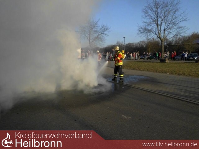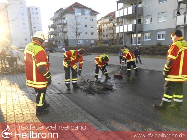 Von dem Fahrer und weiteren jungen Leuten wurde versucht die zunächst kleinen Flammen mit Wasserflaschen zu löschen. Als dies nicht gelang wurde die Feuerwehr alarmiert.