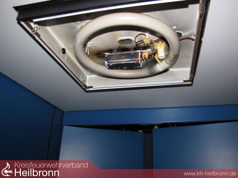 An einem elektrischen Bauteil in der Aufzugskabine war ein Schmorbrand entstanden, der Aufzug wurde stromlos geschaltet, der Aufzugschacht belüftet und der komplette Treppenhausbereich mit der Wärmebildkamera kontrolliert.