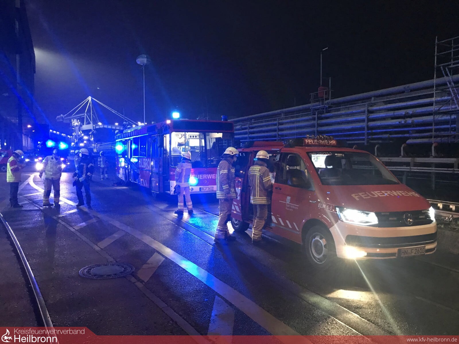 Kurz vor 18 Uhr ging ein Notruf von der EnBW bei der Leitstelle für Feuerwehr und Rettungsdienst ein. Der Anrufer meldete ein Feuer mit starker Rauchentwicklung im Bereich der Kohlemühlen. Aufgrund der bestätigten Brandmeldung in einem Objekt mit diesen Dimensionen wurde entsprechend dem Einsatzstichwort „Brand in Industriegebäude“ großflächig alarmiert. Einsatzkräfte der Berufs- und Freiwilligen Feuerwehr Heilbronn rückten zur Einsatzstelle an. Beim Eintreffen der ersten Fahrzeuge vor Ort hatten die Firmenmitarbeiter durch erste Löschmaßnahmen das Feuer unter Kontrolle bringen können. Trupps unter Atemschutz führten weitere Nachlöscharbeiten durch und kontrollierten die betroffenen Bereiche. Der Heilbronner Oberbürgermeister Harry Mergel sowie der EnBW-Betriebsleiter Jürgen Weigelt waren ebenfalls vor Ort um sich über das Schadensausmaß in dem für die Region so wichtigen Unternehmen zu informieren. Schnelles und beherztes Eingreifen der EnBW-Mitarbeiter in Verbindung mit den weiteren Löschmaßnahmen der Feuerwehreinsatzkräfte verhinderte Schlimmeres. Ursache für den Brand war vermutlich ausgetretenes Hydrauliköl, welches in die Isolierung eines Heißluftkanals gelangte und sich am heißen Luftkanal der Kohlemühle entzündet hatte.
