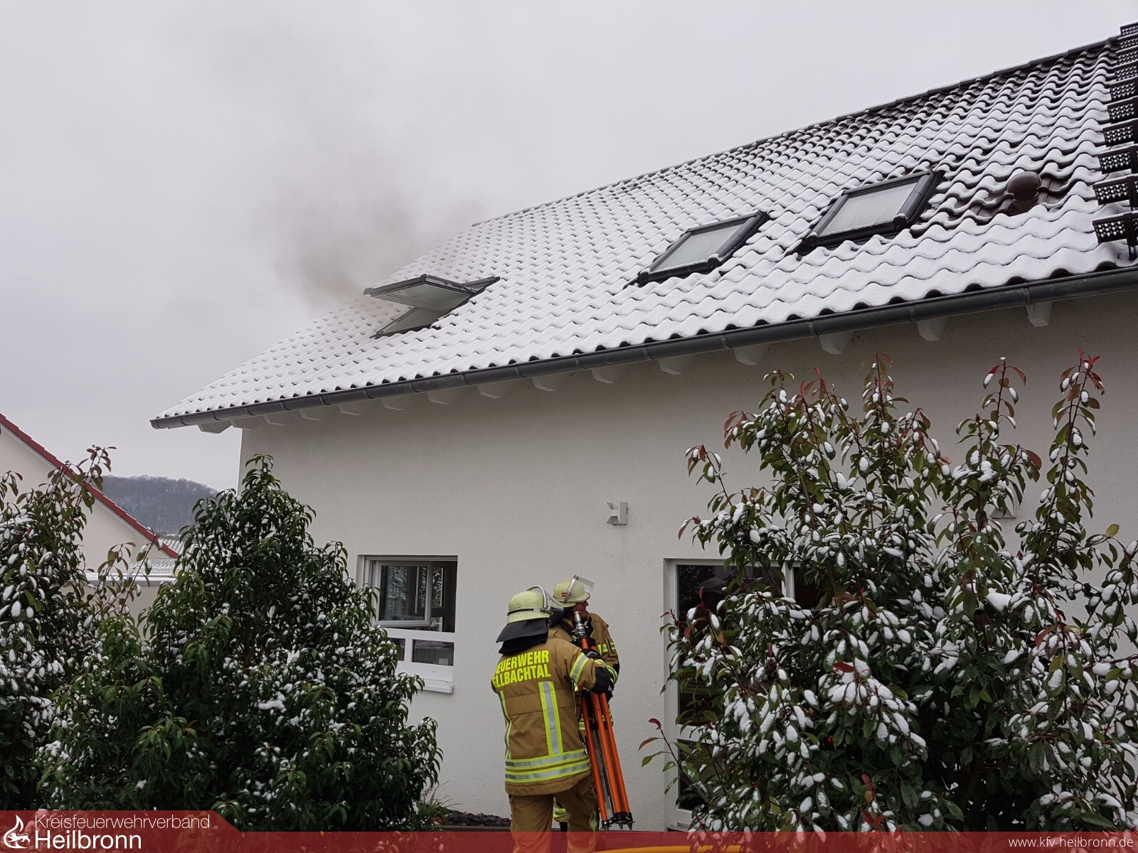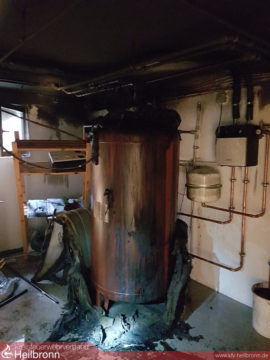 Am Montag Vormittag wurde die Feuerwehr Ellbachtal zu einem Kellerbrand nach Lehrensteinsfeld alarmiert. In einem Kellerraum brannte Dämmaterial an einem Heizkessel. Personen waren zu diesem Zeitpunkt nicht mehr im Gebäude. Eine starke Rauchentwicklung war bereits an der Haustüre vorhanden. Im gesamten Gebäude kam es durch die offen stehende Türe zum Brandraum zu einer starken Rauchausbreitung. Das Einfamilienhaus war dadurch auf allen Etagen, vor allem im Dachgeschoss, massiv verraucht. Zur Brandbekämpfung reichte ein Trupp unter Atemschutz mit einem Löschrohr aus. Die Belüftung vom Gebäude erforderte den Einsatz von zwei weiteren Trupps unter Atemschutz.