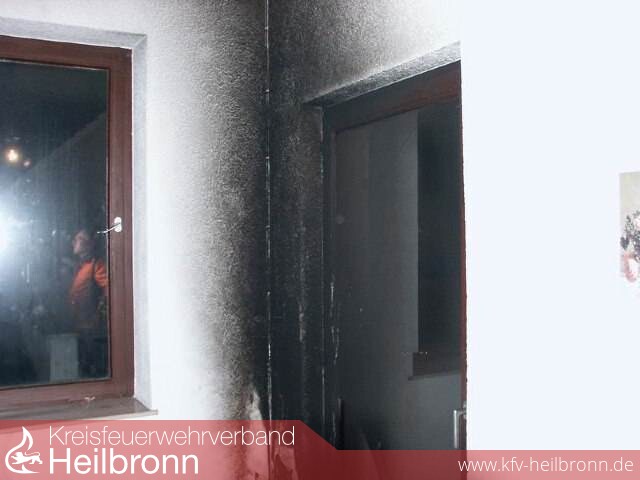 Vermutlich durch Brandstiftung brannte es im 1. OG des Treppenhauses eines Hotels. Durch die Hitze war die Glasscheibe einer sich neben der Brandstelle befindlichen Balkontüre und die Glaskuppel einer Lampe im Treppenhaus geplatzt.