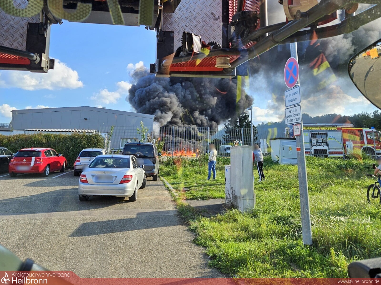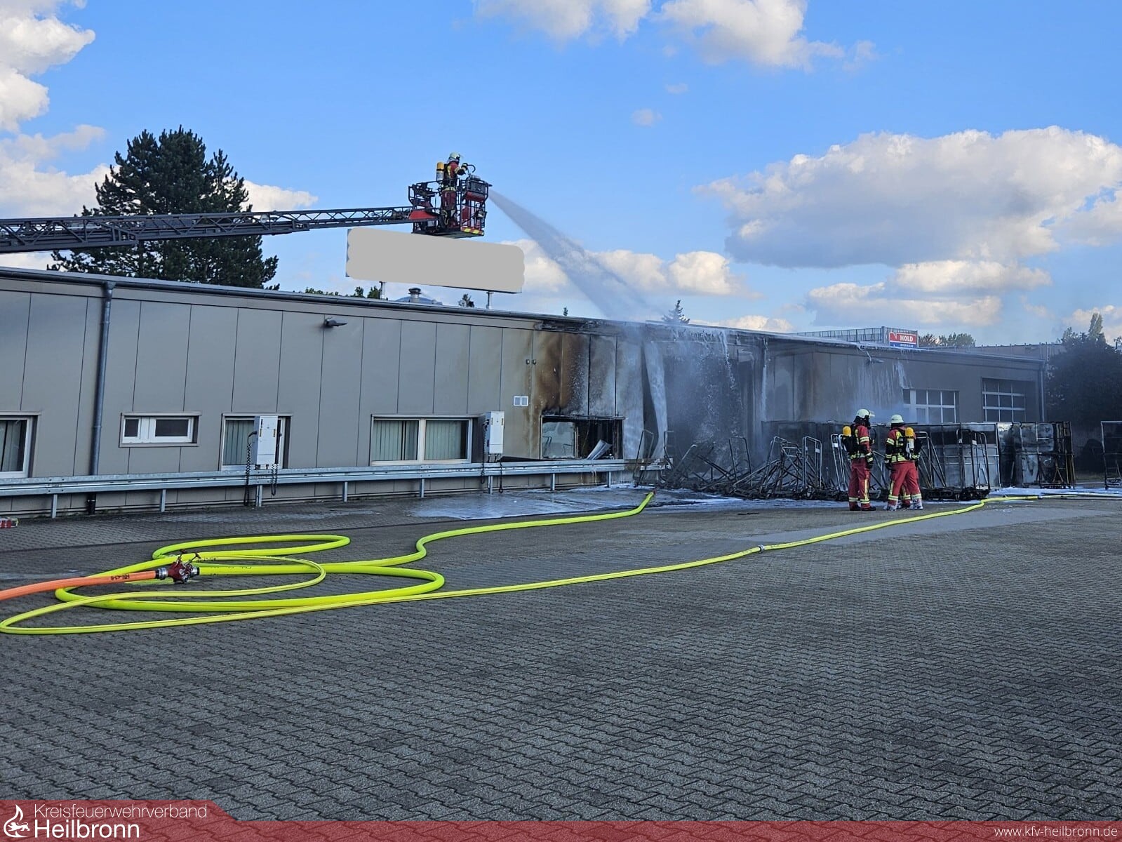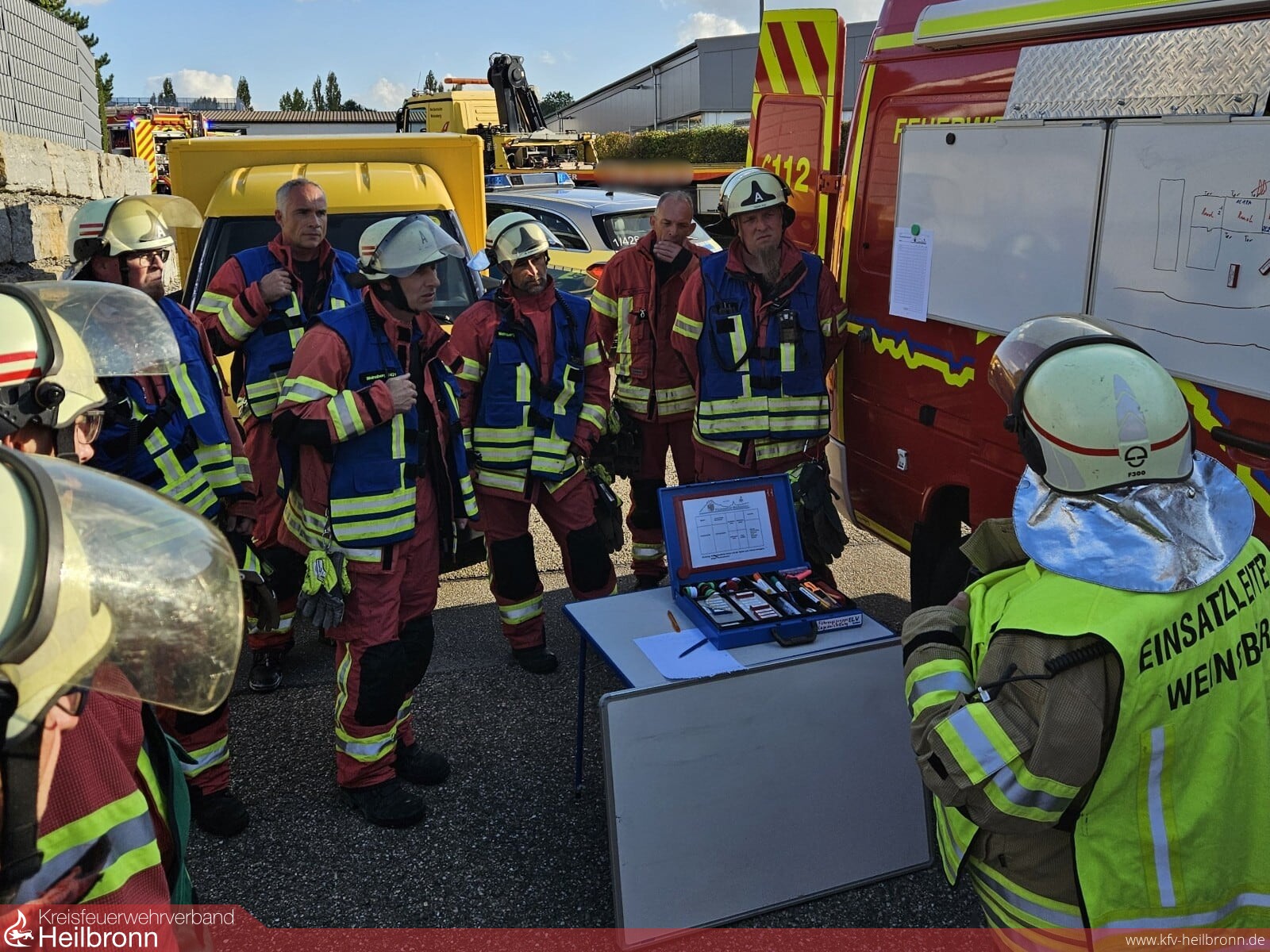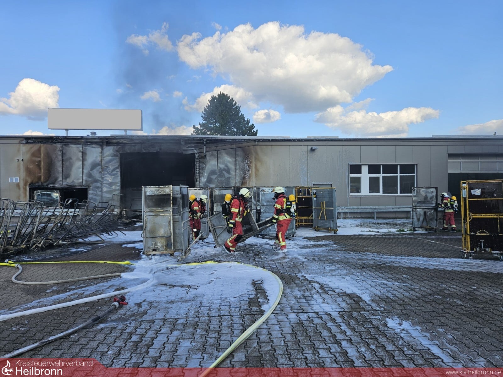 Am 01. Oktober 2025 wurde die Feuerwehr um 16:08 Uhr zu einem Brand im Außenbereich einer Industriehalle alarmiert. Schon auf der Anfahrt zum Gerätehaus war eine große Rauchsäule sichtbar. Beim Eintreffen des ersten Fahrzeugs stand der Außenbereich bereits in Vollbrand, und die Flammen hatten begonnen, ins Innere der Halle überzugreifen. Mehrere Knallgeräusche waren zu hören, durch die enorme Hitze kam es zudem zu Metallbränden.
