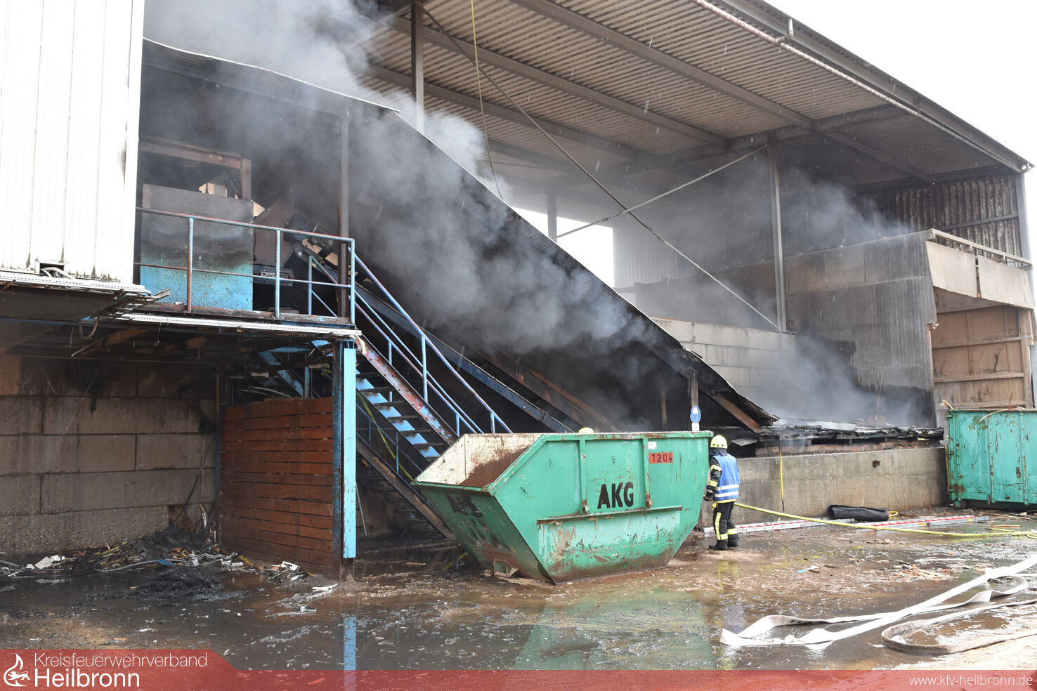 Eine große Hilfe waren auch die Pfaffenhofener Wengerter die mit ihren bis zu 10000 Liter großen Fassanhängern Löschwasser zur Einsatzstelle karrten, anstatt damit ihre Rebstöcke zu gießen. Ein großer Löschwasserteich stand aber auch auf dem Firmengelände zur Verfügung. Bereits nach einer knappen halben Stunde hatten die Einsatzkräfte das Feuer unter Kontrolle. Die Nachlöscharbeiten zogen sich dann allerdings noch um mehr als zwei Stunden hin. Vor allem auch, weil nicht alles was brannte sich mit Wasser löschen ließ.