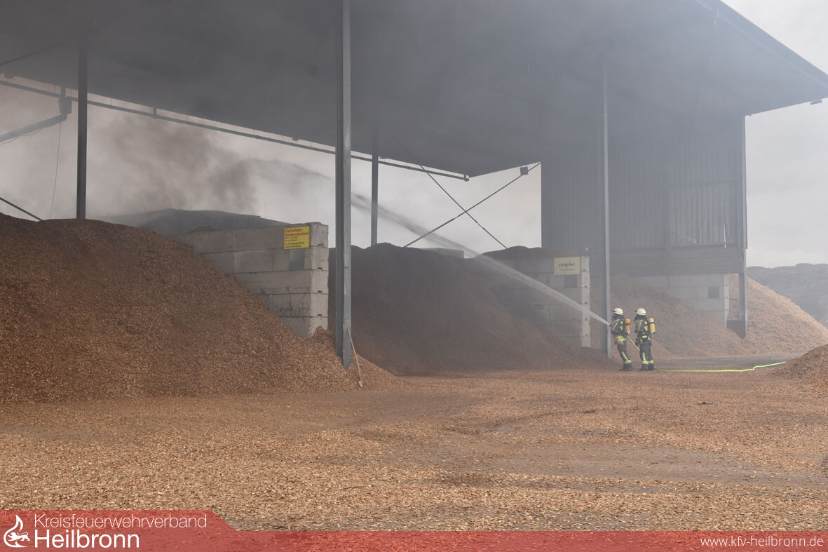 Beim Eintreffen der Pfaffenhofener Feuerwehr, schon wenige Minuten nach dem Alarm um kurz vor halb vier Uhr, „standen die Förderanlagen und das Maschinenhaus im Vollbrand“, berichtete Feuerwehrkommandant Matthias Fried. Vom Feuer bedroht waren auch die angrenzenden Schüttboxen der fertigen Hackschnitzel. Alarmiert wurden auch die Nachbarwehren Güglingen und Zaberfeld. Dies war vor allem Notwendig um genügen Löschwasser zur Verfügung zu haben, begründete der Pfaffenhofener Kommandant.