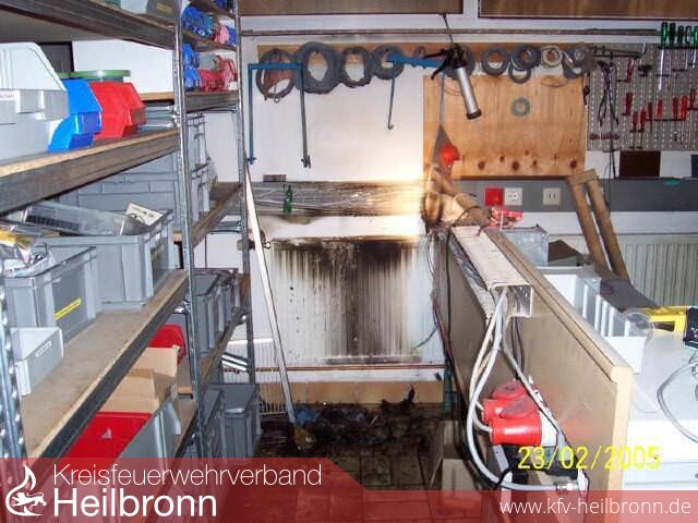 Beim Eintreffen des ersten Fahrzeuges wurde von außen starke Rauchentwicklung im Erdgeschoß des zweistöckigen Gebäudes festgestellt. Nach öffnen der Türe im Erdgeschoß mittels „Zieh - Fix“ konnte ein Trupp vom TLF 16/25 unter Vornahme vom C - Rohr unter Atemschutz im hinteren Bereich der Werkstatt ein Feuerschein entdeckt werden, darauf hin ging ein zweiter Trupp unter Atemschutz und zweitem Rohr ins Gebäude zum weiteren absuchen der Räume. Der Brandherd konnte mittels C - Rohr abgelöscht werden.