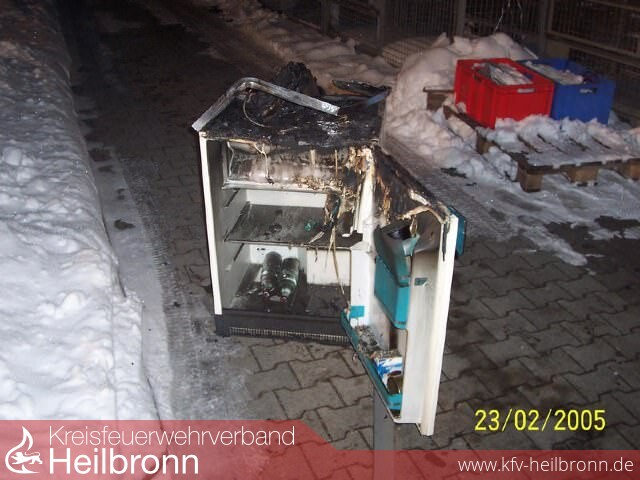 Brandursache war vermutlich ein technischer Defekt an einem Kühlgerät, das dann vom ersten Trupp ins Freie gebracht wurde um vollends abzulöschen, um einen größeren Wasserschaden im Gebäude zu verhindern.