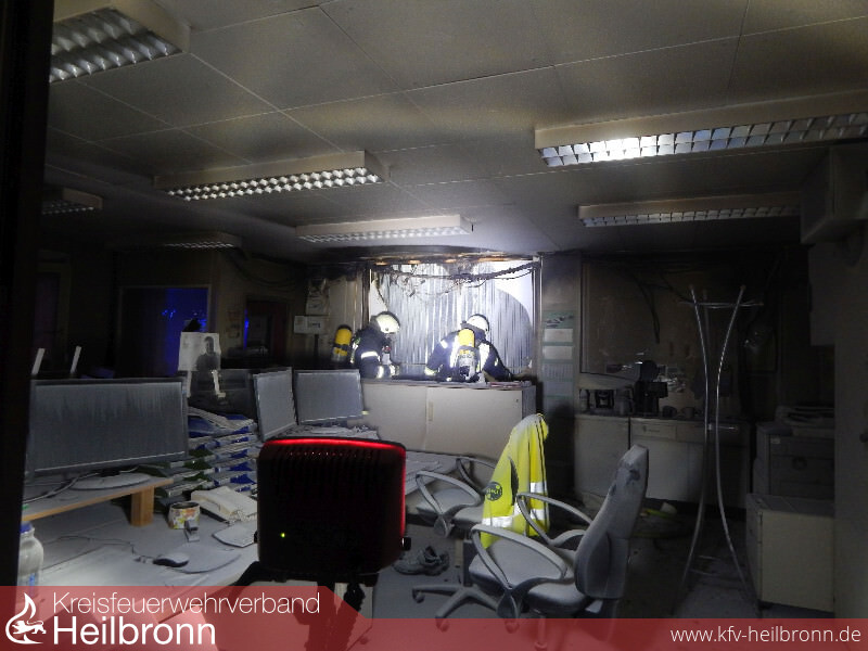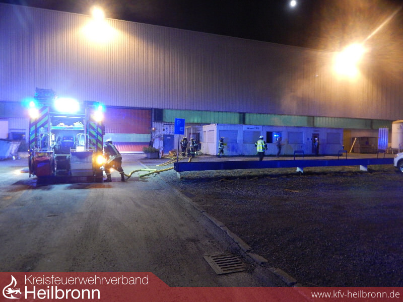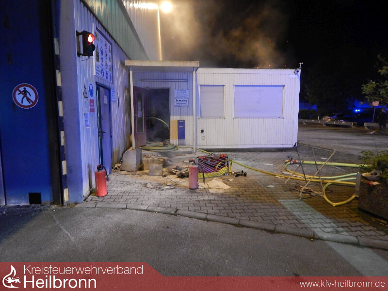 Beim Eintreffen der Einsatzkräfte vor Ort, hatten Firmenmitarbeiter die Flammen bereits größtenteils mit zwei Pulverlöschern über die Zugangstür gelöscht.