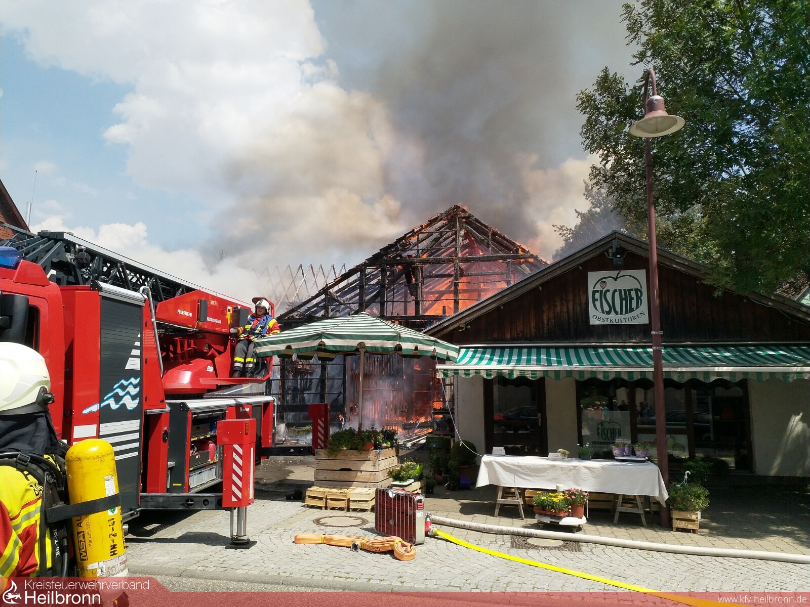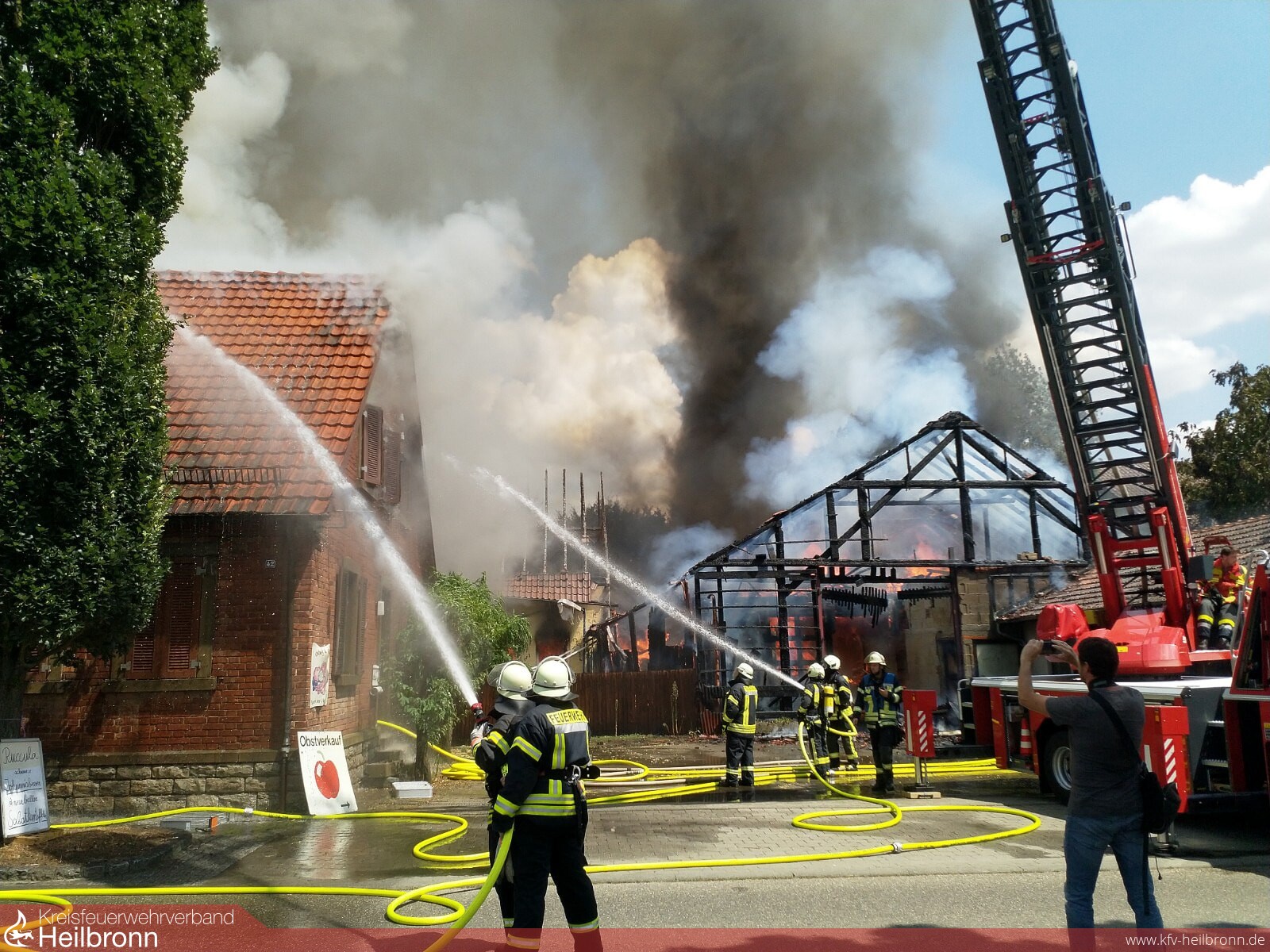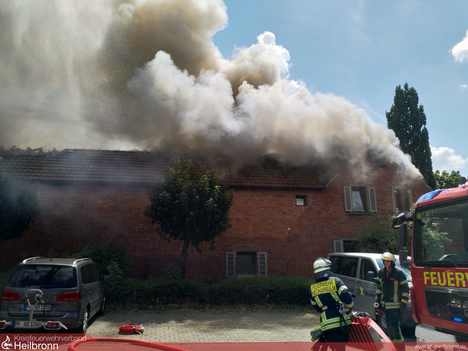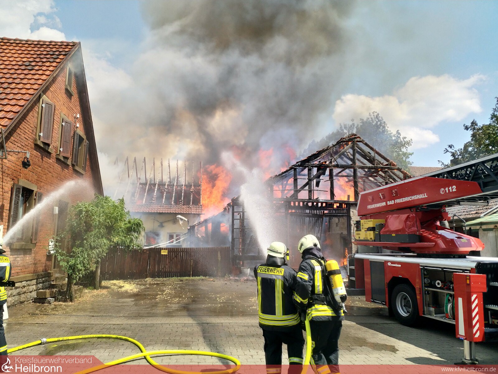 Am Freitag, den 13.07 wurden die Feuerwehren Offenau, Bad Friedrichshall und Neckarsulm zu einem Brand eines landwirtschaftlichen Anwesens in Offenau alarmiert. Vor Ort stellte sich heraus, dass der hintere Bereich des zusammengebauten Gebäudekomplexes bereits im Vollbrand stand. Bewohner im vorderen Wohnhaus wurden von der Feuerwehr in Sicherheit gebracht. Ebenfalls wurde der auf dem Gelände befindliche Hofladen evakuiert.