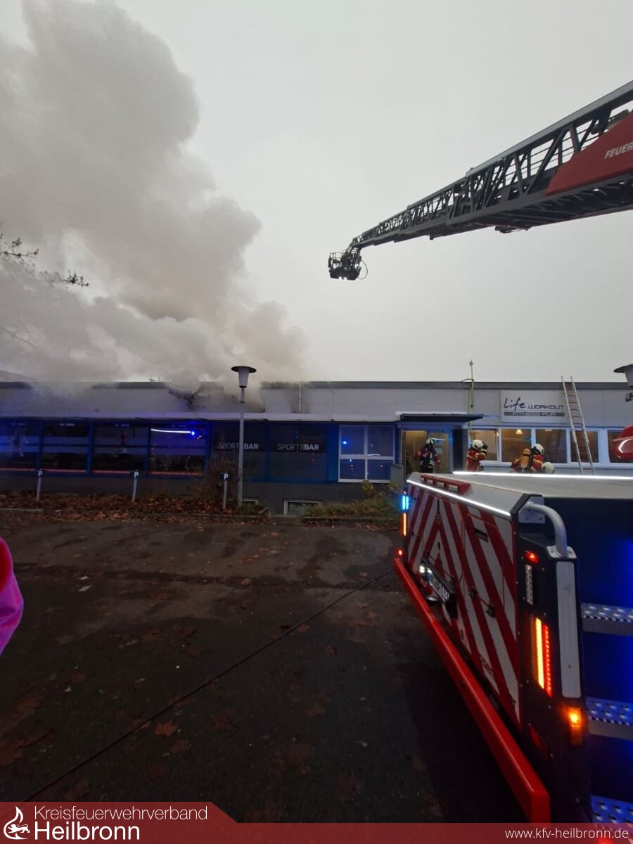 Beim Eintreffen des Einsatzleiters war ein eingeschossiger Industrieflachdachbau in dem ein 24 h geöffnetes Fitness Studio sowie eine Sportbar untergebracht ist, auf einer Fläche von rund 1000 m² komplett verraucht. Auf dem Flachdach waren Feuerschein und eine massive Rauchentwicklung sichtbar. Nachdem in der Anfangsphase nicht bekannt war ob sich noch Personen im Gebäude befanden, wurden umgehend Trupps unter Atemschutz zur Menschenrettung und Brandbekämpfung ins Gebäude gebracht. Glücklicherweise konnten keine Personen im Gebäude aufgefunden werden.