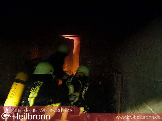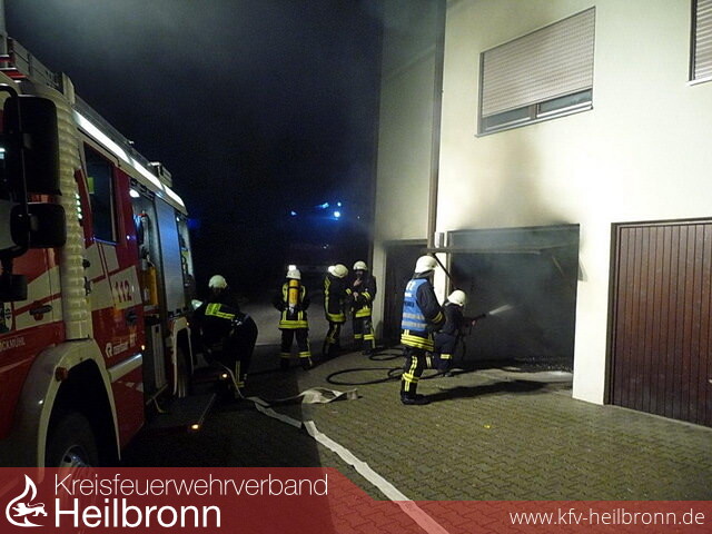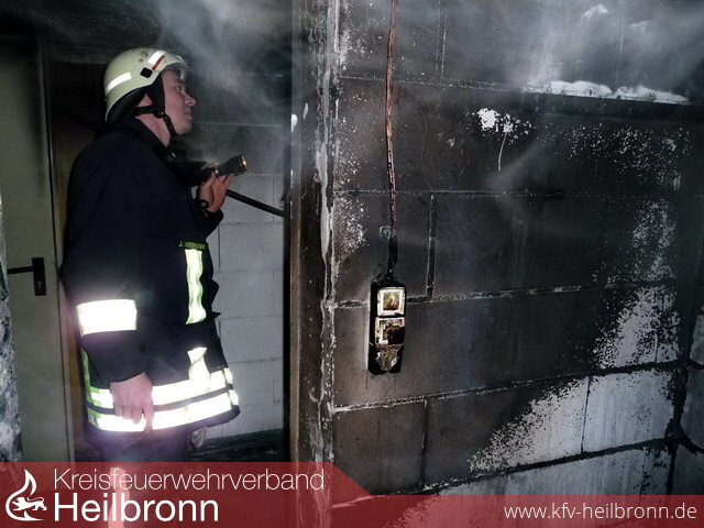 Die Einsatzkräfte gingen sofort mit zwei Trupps unter Atemschutz in das Gebäude vor, um die Familien zu betreuen. Ein dritter Trupp unter Atemschutz bekämpfte den in Vollbrand stehenden Kellerraum hinter der Garage.