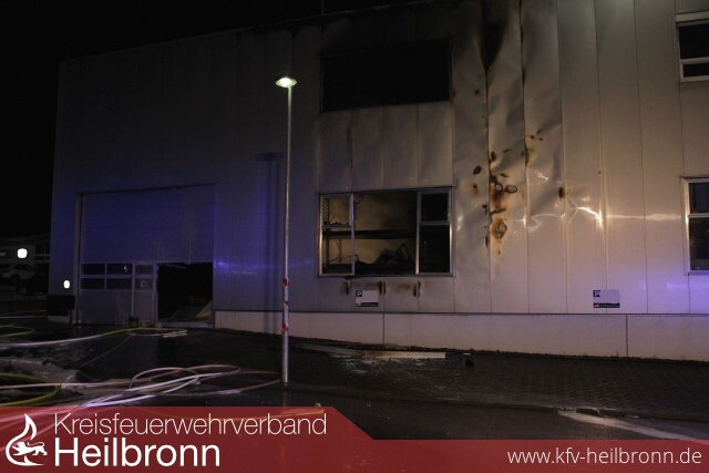 An der Einsatzstelle eingetroffen, war im 1. Obergeschoss der Maschinenhalle bereits ein großes Fenster durch die Hitzeentwicklung im Gebäude zerborsten und es drang starker Rauch aus dem Gebäude heraus.Da bekannt ist, dass in dieser Firma auch Kunststoffe verarbeitet werden und sich direkt angrenzend an das Brandobjekt ein Autohaus mit einer Vielzahl von Neuwagen, bzw. ein Betrieb für Oberflächentechnik befindet, hat der Einsatzleiter aufgrund der Schadenslage unmittelbar den Löschzug der BF Heilbronn und den GAS 4 Löschzug Eppingen und Neckarsulm nachalarmiert.