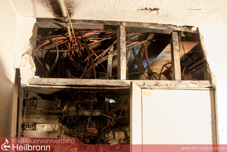 In einem Mehrfamilienhaus in der Bad Friedrichshaller Binnetstraße brannte im Erdgeschoss ein Elektroverteilerkasten. Ein Bewohner welcher das Haus verlassen wollte, bemerkte den Brandgeruch und entdeckte schließlich den Brand im Verteilerkasten. Über den Notruf 112 verständigte er die Integrierte Leitstelle Heilbronn welche die Feuerwehr Bad Friedrichshall mit dem Stichwort „Zimmerbrand“ alarmierte. Auch die im kompletten Haus ordnungsgemäß installierten Rauchmelder lösten nacheinander aus und warnten die restlichen Hausbewohner. 17 Bewohner konnten das Gebäude rechtzeitig verlassen, eine Frau wurde mit Verdacht auf Rauchgasinhalation durch den Rettungsdienst ins Krankenhaus gebracht.