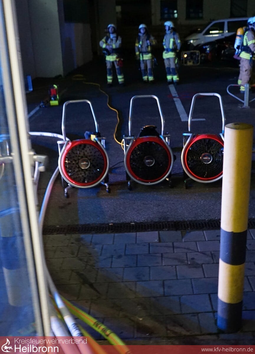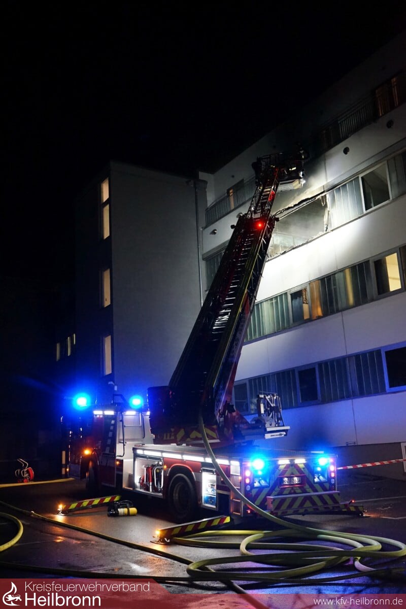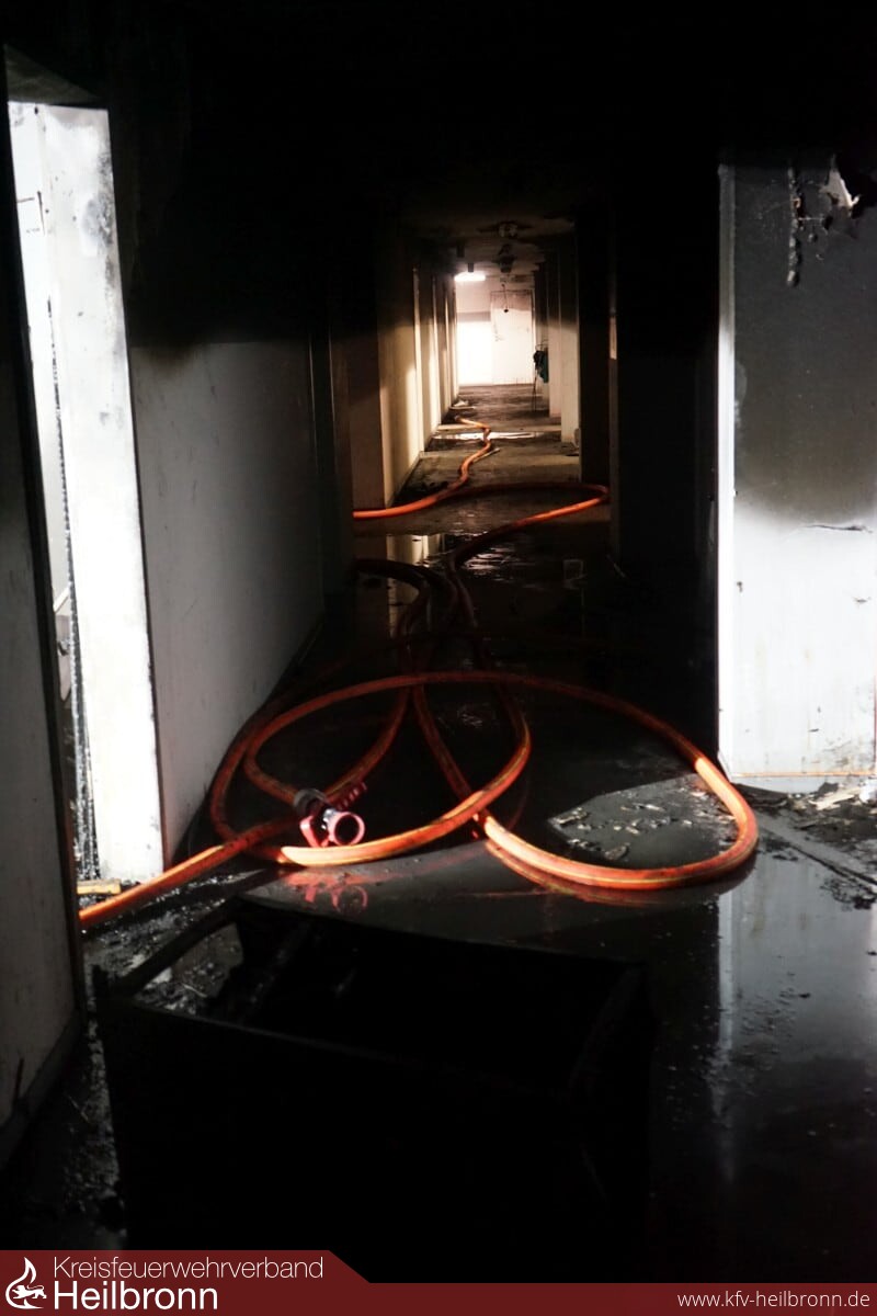 Aufgrund der enormen Rauch- und Rußbildung war das dritte Obergeschoß nicht mehr nutzbar, so dass die Bewohner übergangsweise in Aufenthaltscontainern der Feuerwehr unterkamen. Hierbei unterstützen die Freiwilligen Feuerwehren Neckarsulm und Bad Friedrichshall mit zwei weiteren Abrollbehältern „Aufenthalt“. Von Seiten der Stadt Heilbronn wurden umgehend Ersatzunterkünfte organisiert. Im Einsatz waren rund 80 Einsatzkräfte der Berufs- und Freiwilligen Feuerwehren mit 3 Löschzügen, Sondereinheiten wie die Führungsgruppe und die ANTS-Einheit sowie weitere Sonderfahrzeuge.