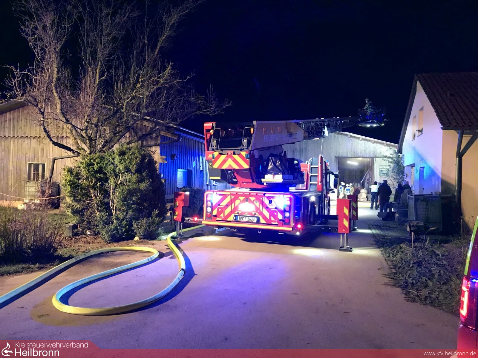 Kurz nach 18.00 Uhr wurde der Leitstelle für Feuerwehr und Rettungsdienst eine Rauchentwicklung in einem landwirtschaftlichen Gebäude in Heilbronn-Böckingen gemeldet. Beim Eintreffen vor Ort brannte Futtermittel in einer Lagerhalle. Drei Trupps unter Atemschutz hatten die Flammen schnell eindämmen können. Somit bestand keine Gefahr mehr für eine Ausbreitung auf ein Gasflaschenlager bzw. für die komplett in Holzbauweise errichtete Halle. Da bereits Teile des Zwischenbodens bzw. der Dachkonstruktion von dem Brand betroffen waren, mussten diese entfernt werden.