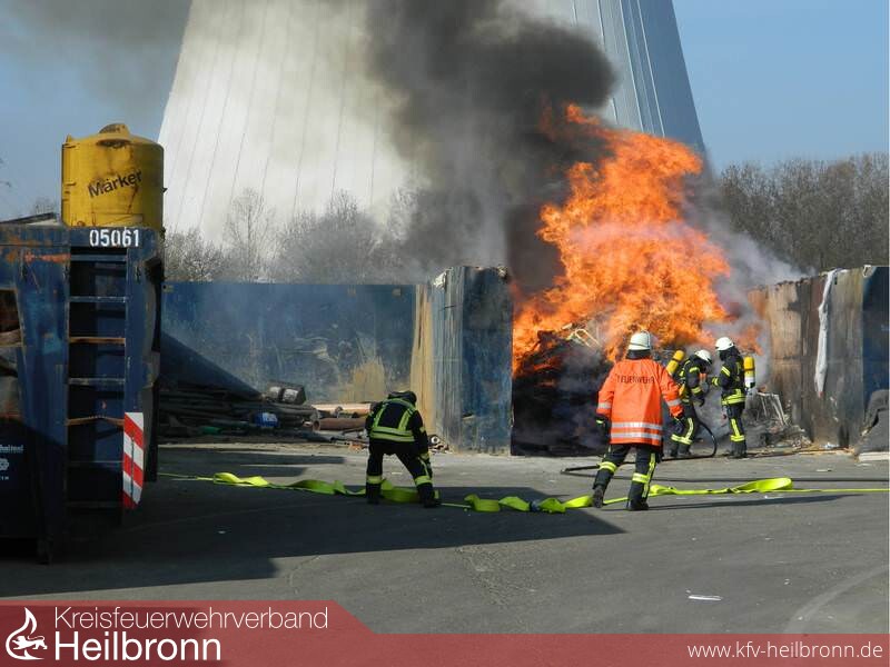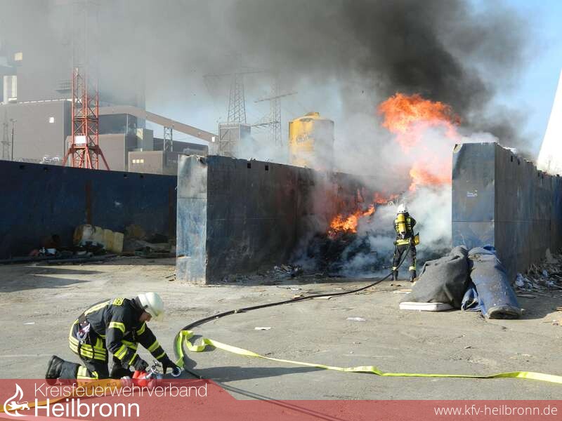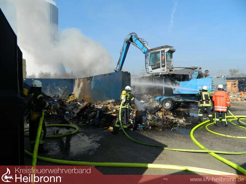 Ein Mitarbeiter einer Heilbronner Recyclingfirma hatte gegen 09.26 Uhr ein Feuer im Lagerbereich für Restmüll entdeckt.