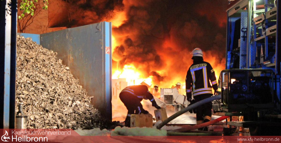 Ein starkes Feuer hat in der Nacht zu Freitag die Feuerwehren aus Eppingen und Lauffen beschäftigt. Das Löschen eines Großbrands auf dem Gelände der Recyclingfirma Alba in Eppingen gestaltete sich als schwierig. Verletzt wurde niemand.