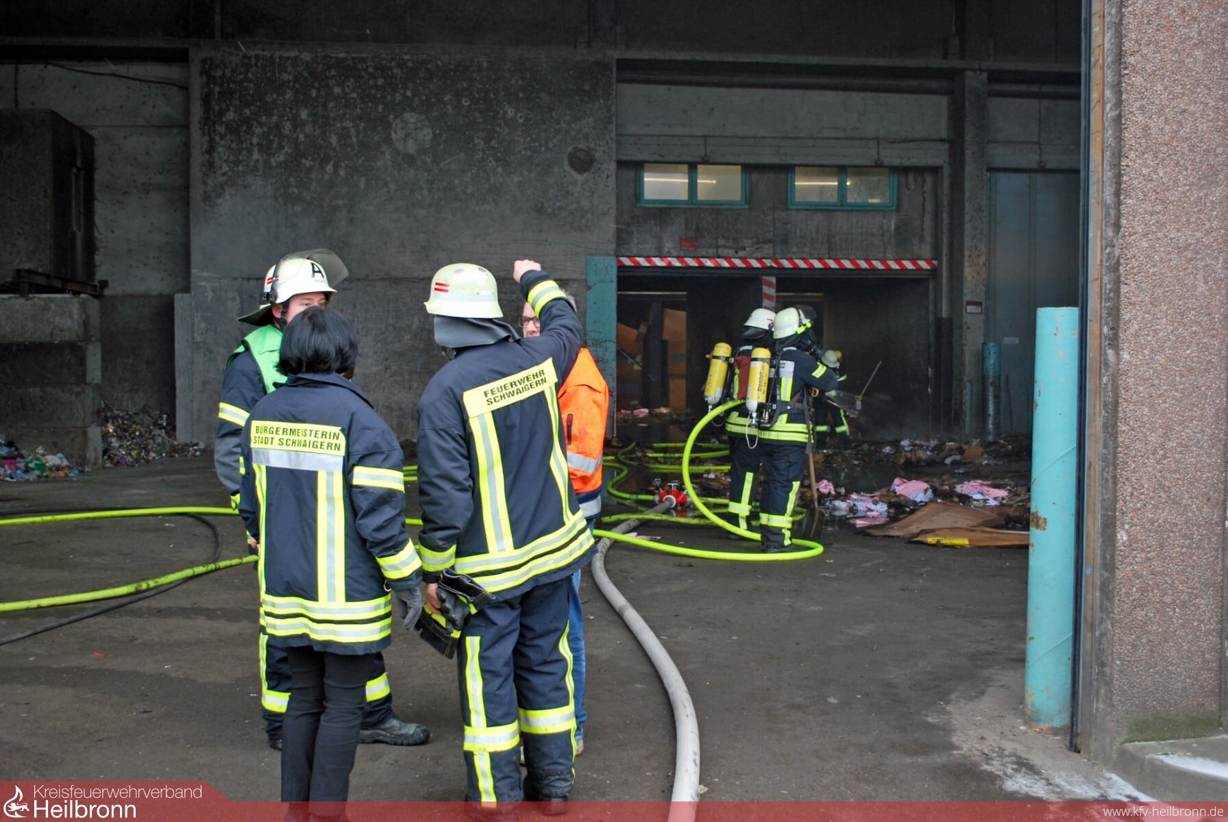 Die Feuerwehr wurde durch die Brandmeldeanlage zur Firma Kurz Recycling im Gewerbegebiet alarmiert. Beim Eintreffen der ersten Kräfte konnte bereits eine starke Rauchentwicklung aus dem Gebäude festgestellt werden. Im Bereich der Rohstoffanlieferung waren Karton und Papier in Brand geraten. Aufgrund der starken Rauchentwicklung wurde zunächst ein größerer Brand vermutet. Vom Einsatzleiter wurde daher Alarm für alle Abteilungswehren ausgelöst.