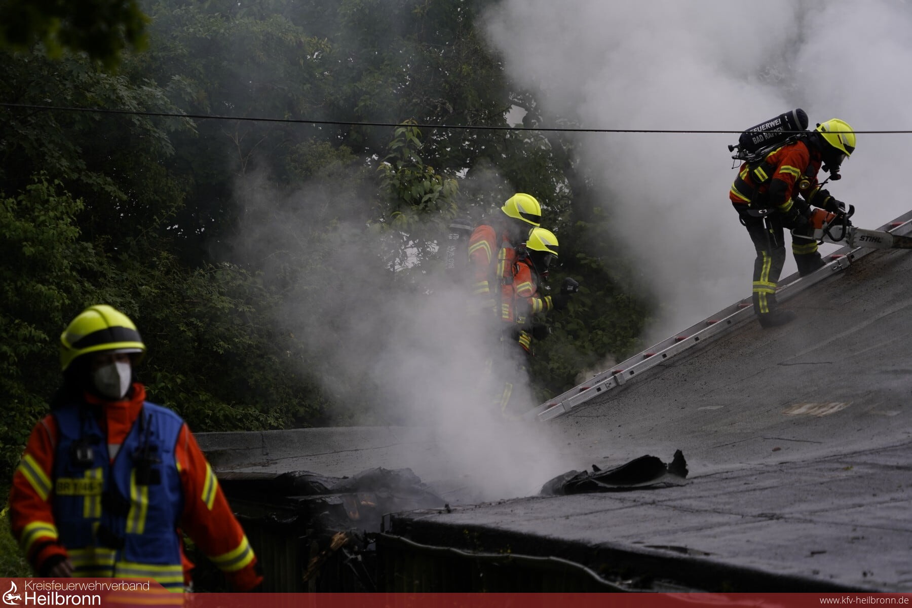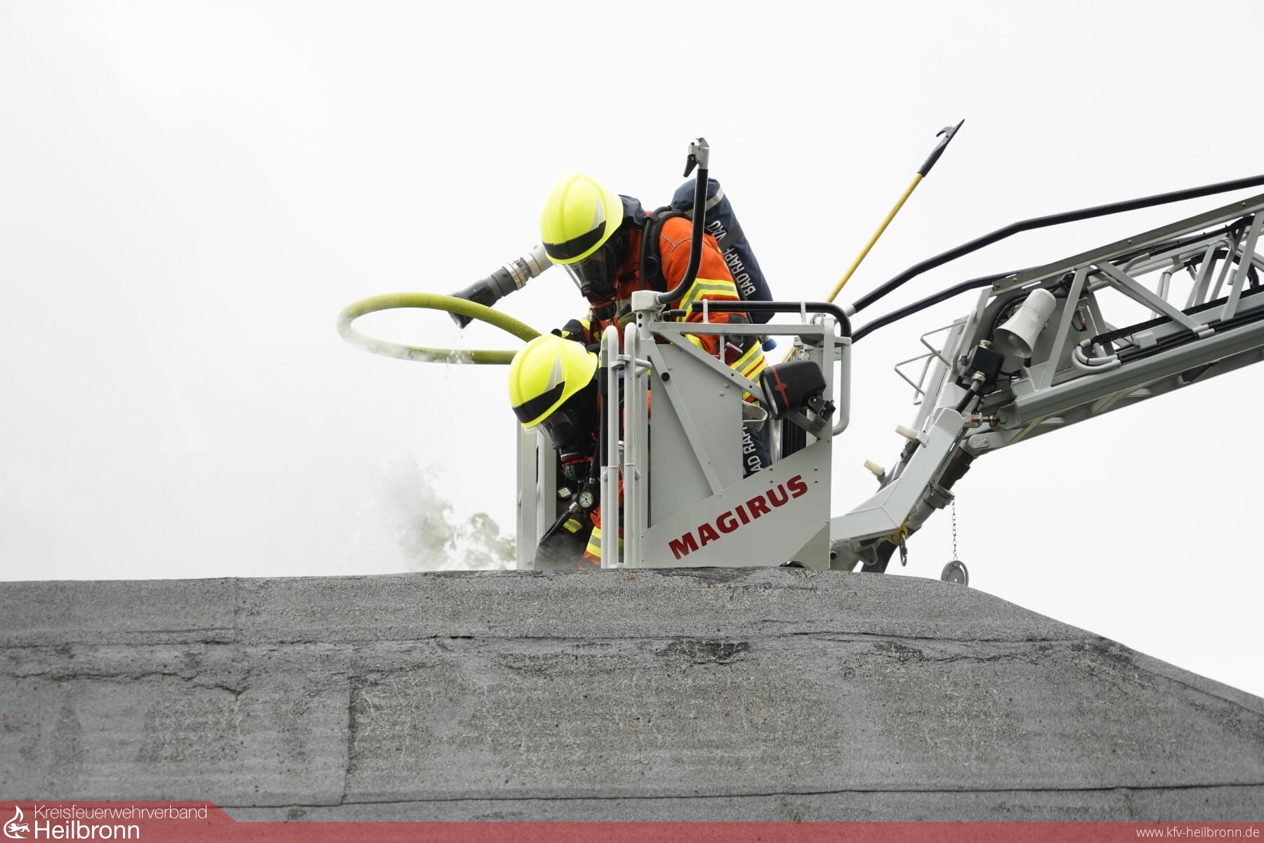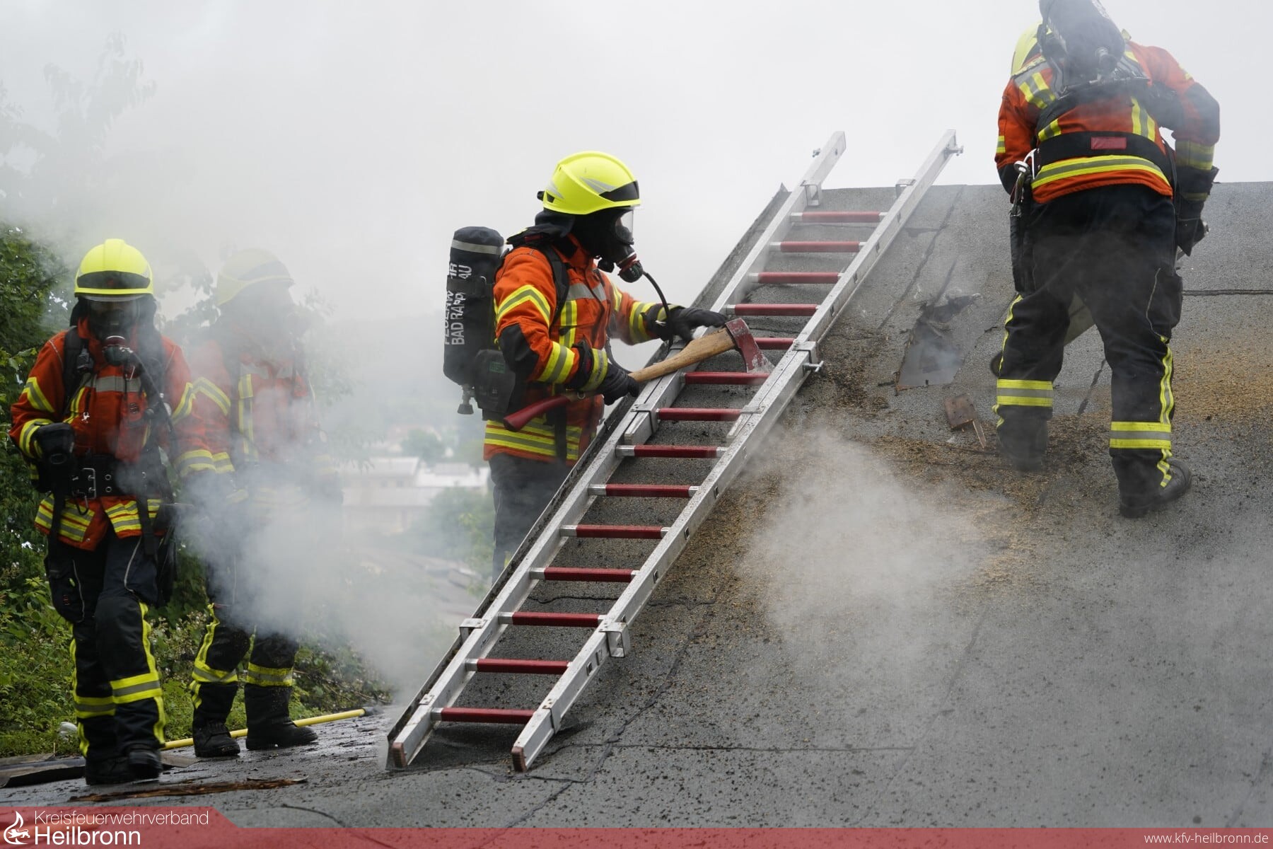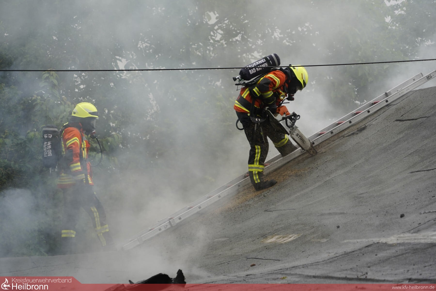 Im weiteren Einsatzverlauf wurde das Dach mittels einer Rettungssäge geöffnet, um dort Glutnester zu finden und diese abzulöschen. Außerdem wurde der außenliegende unterirdische Gastank von den Einsatzkräften der Feuerwehr abgeschiebert und damit gesichert. Die Feuerwehr Bad Wimpfen wurde in der Folge ebenfalls zur Unterstützung mit Atemschutzgeräteträgern alarmiert.