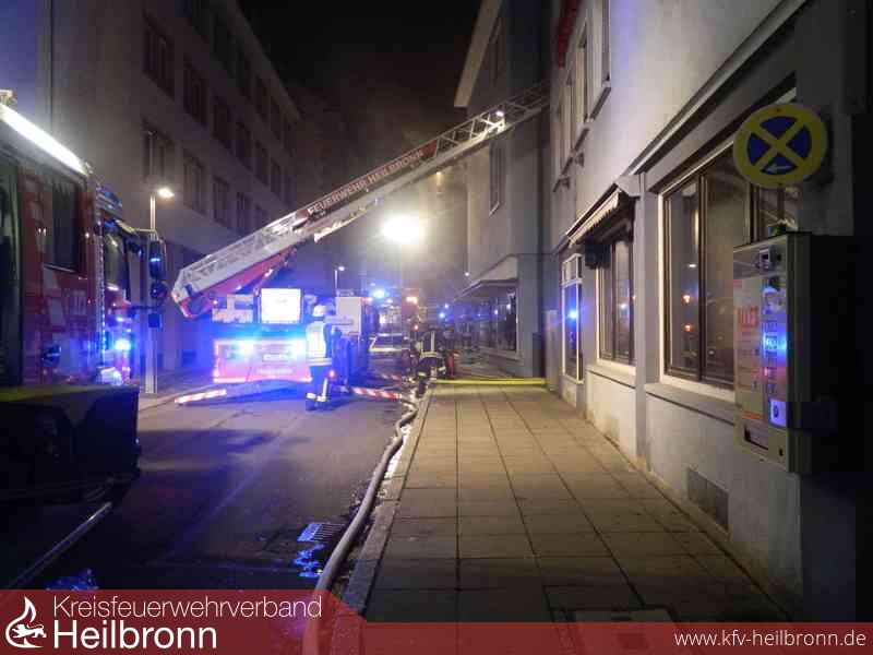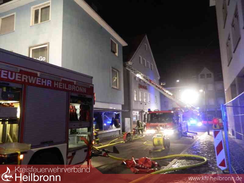 Bei einem Brand im Erdgeschoss eines Wohn- und Geschäftshauses in der Heilbronner Innenstadt in unmittelbarerer Nähe des Rathauses sind nach Polizeiangaben drei Menschen leicht verletzt worden.