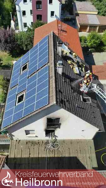 Aufgrund der heißen Brandgase hatten sich kleinere Glutnester unter der Dachhaut gebildet. Somit mussten auch die Isolation im Dachgeschoss sowie Teile der Dacheindeckung geöffnet und Löscharbeiten durchgeführt werden. Hierzu kamen zwei Drehleitern parallel zum Einsatz.