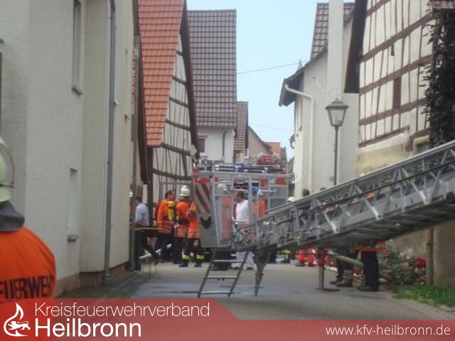 Am 23. August 2011 wurde die Abteilung Kleingartach gegen 12.00 Uhr zu einem Küchenbrand in die Untere Gasse alarmiert. Beim Eintreffen war bereits dichter Rauch aus allen Fensteröffnungen im 1. OG und im DG zu sehen. Die anschließende Befragung ergab dass sich im Gebäude keine Personen mehr befanden, ein Rottweiler hingegen noch im EG eingesperrt war. Weiter gab die Anwohnerin mit Ihrem Kleinkind an, dass der Brand in der Küche ausgebrochen sei, Sie aber aktuell nicht gekocht hat. Das Treppenhaus war bis zum 1. OG rauchfrei, wobei der Rauch durch die geschlossene Glastüre austrat und das DG ebenfalls kontaminiert wurde. Ein Feuerschein war zu diesem Zeitpunkt nicht zu erkennen.In Folge der hohen Brandlast durch das Fachwerkdachgebälk und dem vorhandenen Hausrat, entschied sich der Einsatzleiter den Löschzug der Abteilung Eppingen nachzualarmieren.Vom Angriffstrupp der Abteilung Kleingartach wurde das 1. Rohr unter PA vorgenommen und die Küche abgelöscht. Rund 10 Minuten nach Eintreffen der Stadteilwehr wurde \"Feuer aus\" gemeldet.