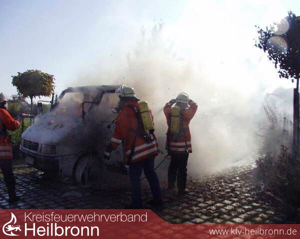 Die Feuerwehren Obereisesheim und Neckarsulm löschten den in Vollbrand stehenden