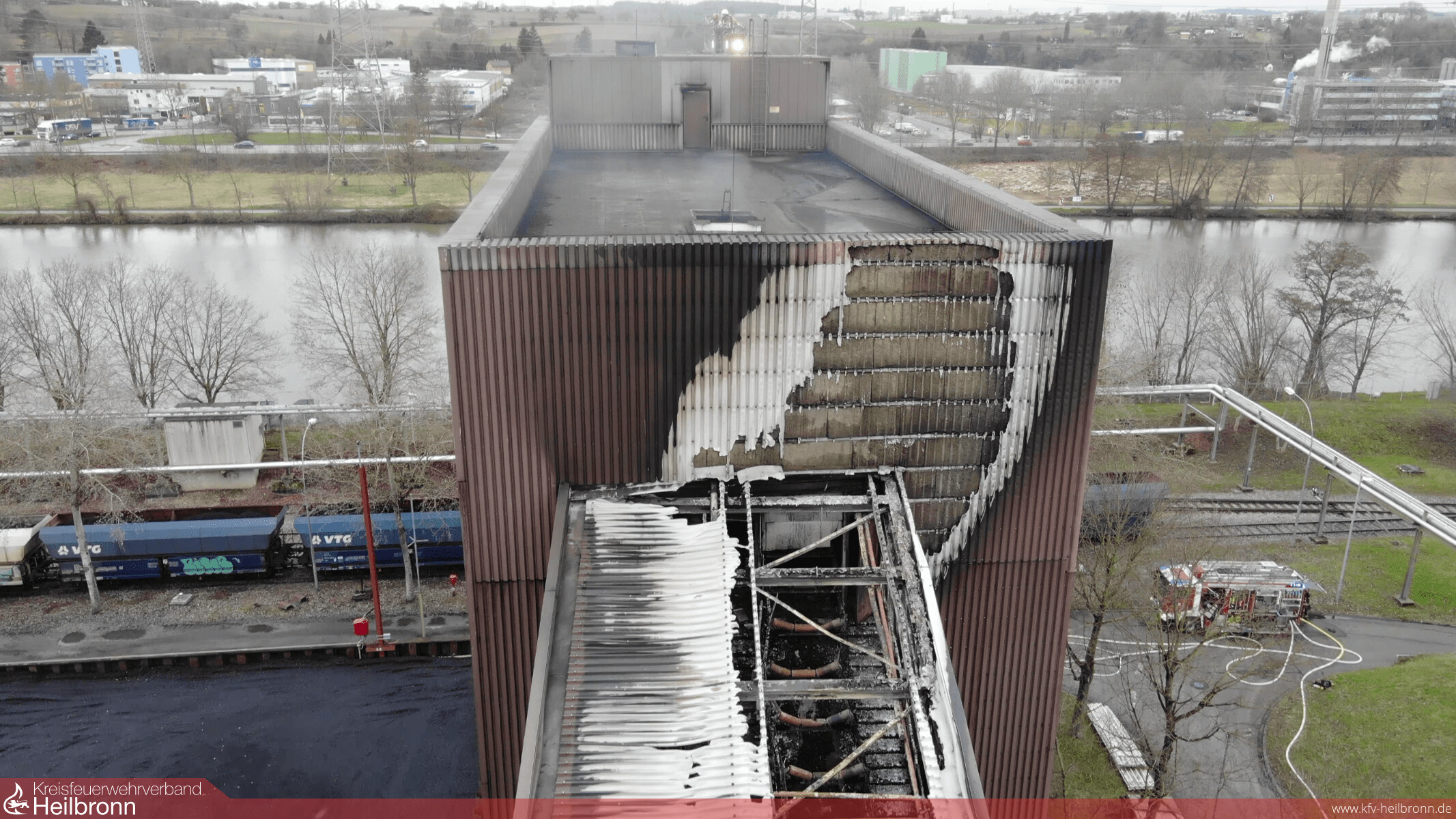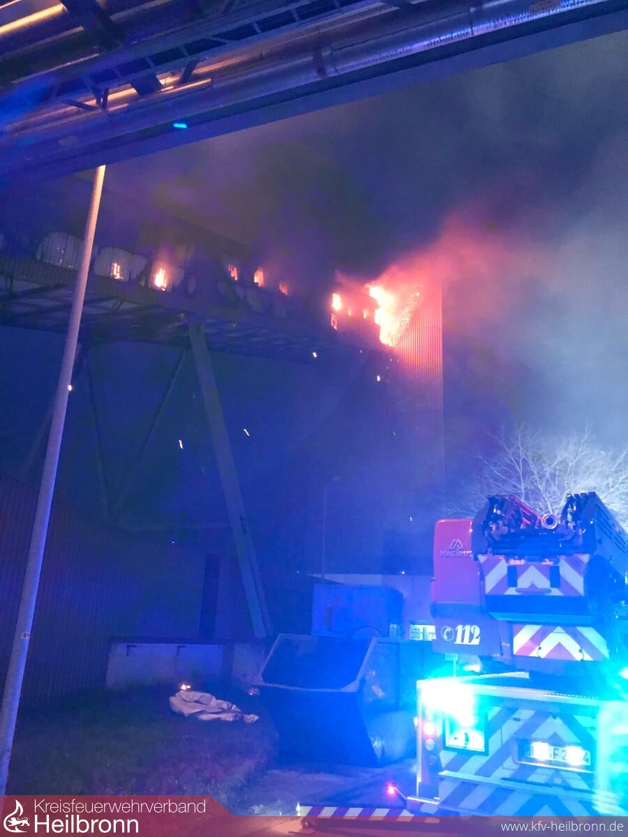 Um 06.38 Uhr wurde die Feuerwehr zum Kohlekraftwerk in die Lichtenbergerstraße gerufen. Vor Ort war eine Schrägförderanlage zur Bekohlung des Blockes sieben in Brand geraten. Beim Eintreffen an der Einsatzstelle schlugen bereits Flammen aus der mit Blech verkleideten Behausung. Aufgrund der prekären Lage wurden umgehend weitere Einsatzkräfte nachgefordert und Gesamtalarm für die Feuerwehr Heilbronn ausgelöst. Durch das schnelle Vorgehen im Innenangriff sowie über die Drehleiter im Außenangriff gelang es das Feuer noch rechtzeitig zu löschen, bevor die Flammen in andere Gebäudeteile eindringen konnten. Die Feuerwehren Heilbronn und Neckarsulm führten an der Brandstelle sowie an verschiedenen Stellen im Umkreis Messungen durch. Diese ergaben keine bedenklichen Werte, so dass eine Gefährdung der Bevölkerung ausgeschlossen werden konnte. Oberbürgermeister Harry Mergel und Bezirksbrandmeister Adrian Wibel waren ebenfalls an der Einsatzstelle um sich persönlich ein Bild über die Lage vor Ort zu machen. Die polizeilichen Ermittlungen zur Feststellung der Brandursache wurden aufgenommen.