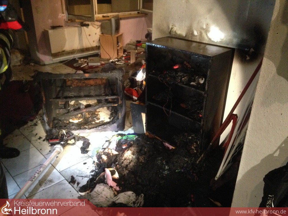 Vermutlich durch einen technischen Defekt an einem Elektrogerät, welches in einer Holzkommode stand, brach der Brand aus. Das Feuer griff auf das Möbelstück sowie einen Wohnsessel über. Die Einsatzkräfte löschten den Brand ab und belüfteten die Wohnung.