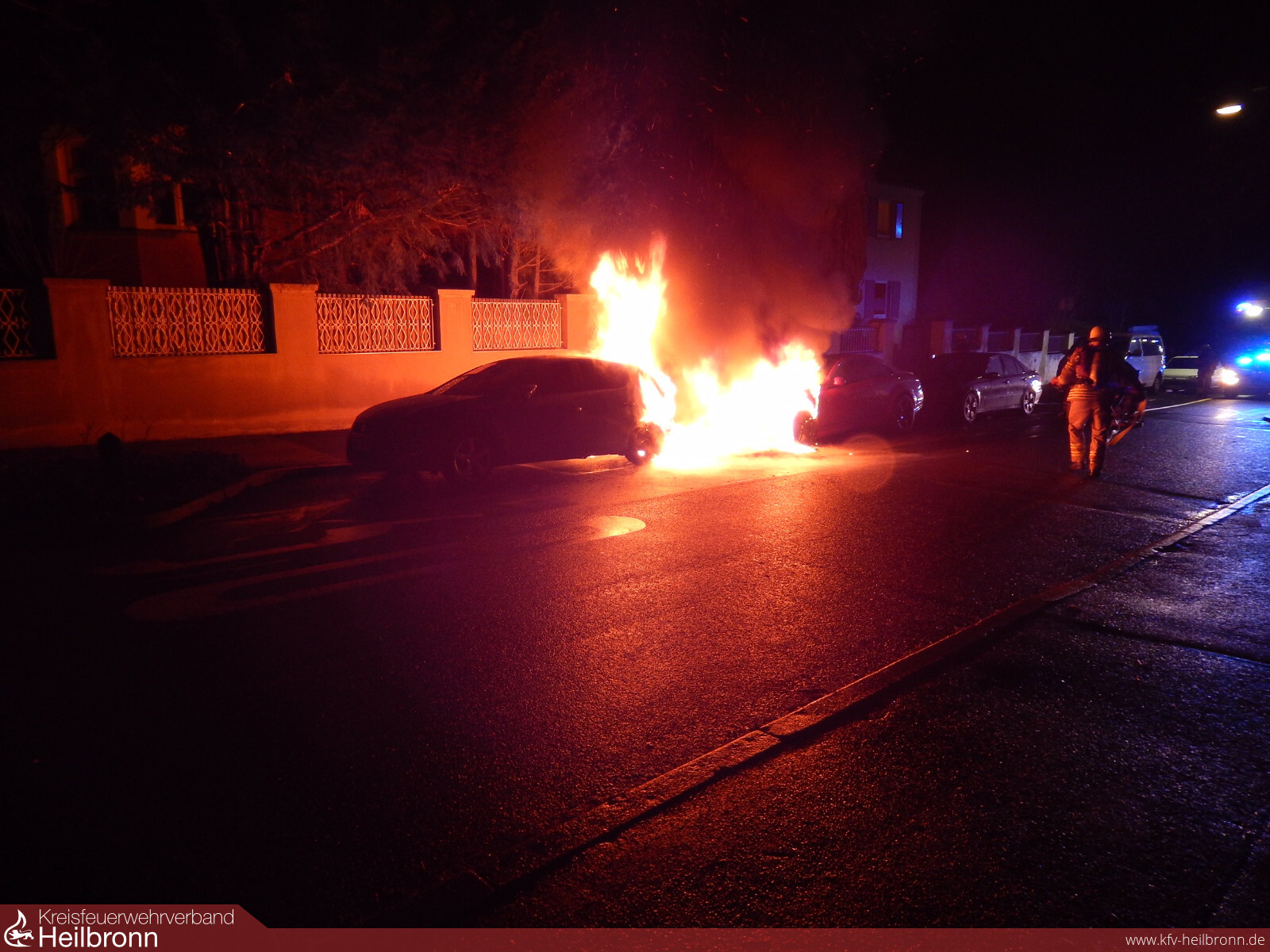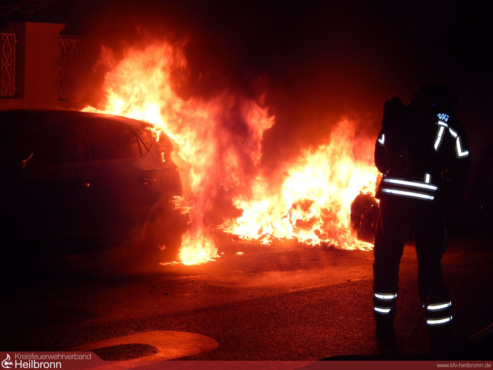 Auf dem Gehweg vor Ort brannten zwei im geringen Abstand zu einander geparkte Autos.