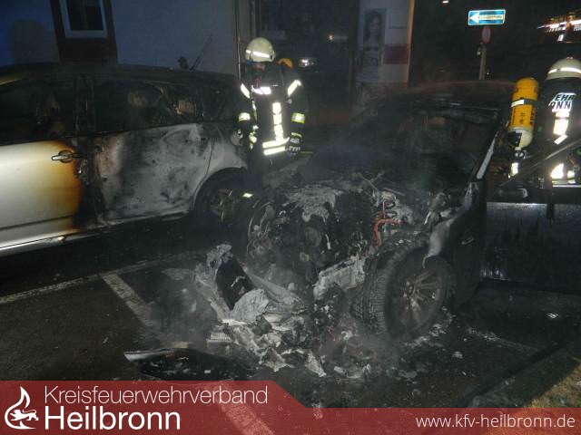 Aus noch ungeklärter Ursache gingen am Montag gegen 06.06 Uhr zwei Fahrzeuge in Flammen auf.
