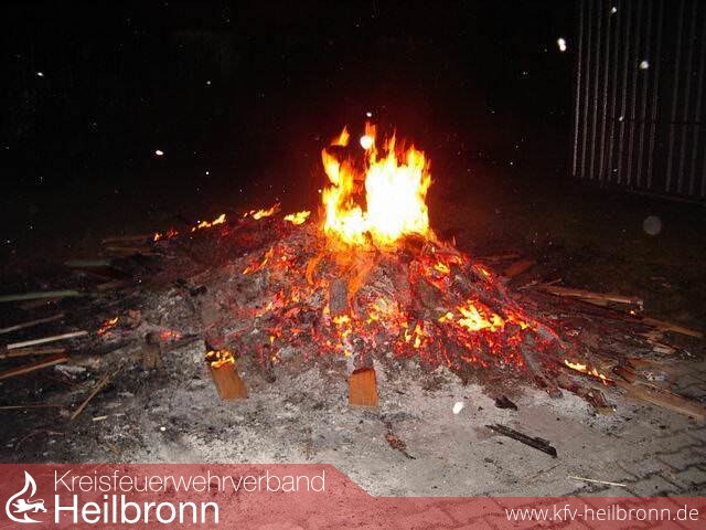 Die FF Möckmühl lies das Feuer vollends kontrolliert abbrennen, den Arbeitern wurde weiteres nachlegen der Paletten untersagt.
