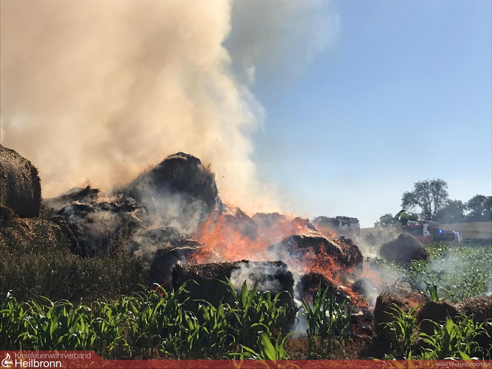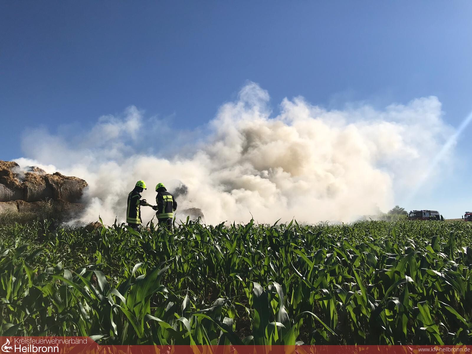 Beim Eintreffen der Feuerwehr konnte erkannt werden, dass es sich bei dem Brandmaterial um mehrere Strohballen handelte, welche auf einer Grünfläche neben einem Feldweg abgelegt waren. Um ein Ausbreiten des Feuers aufgrund der Trockenheit und der hohen Waldbrandgefahr schnellstmöglich zu unterbinden, wurde das Feuer großflächig bekämpft. Schon nach wenigen Minuten hatten die eingesetzten Kräfte das Feuer unter Kontrolle, bzw. gelöscht. Ein anschließender Wärmebildeinsatz verlief negativ und wies auf keine weiteren Glutnester oder Gefahren hin. Erste Anzeichen für die Ursache des Feuers konnten vor Ort durch die Rettungskräfte nicht erlangt werden. Die Einsatzstelle wurde der Polizei zur weiteren Veranlassung im Anschluss übergeben.
