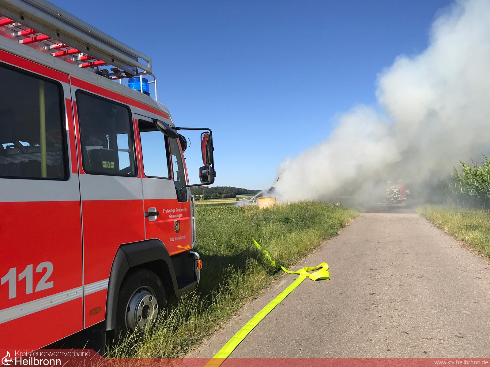 Am Samstag, den 29. Juni wurden die Freiwillige Feuerwehr Gemmingen und Eppingen zu einem Kleinbrand auf der L592 gerufen. Ein Anrufer meldete der ILS, dass er eine größere Rauchentwicklung zwischen Gemmingen und Eppingen-Richen unweit der Straße beobachtet hätte.