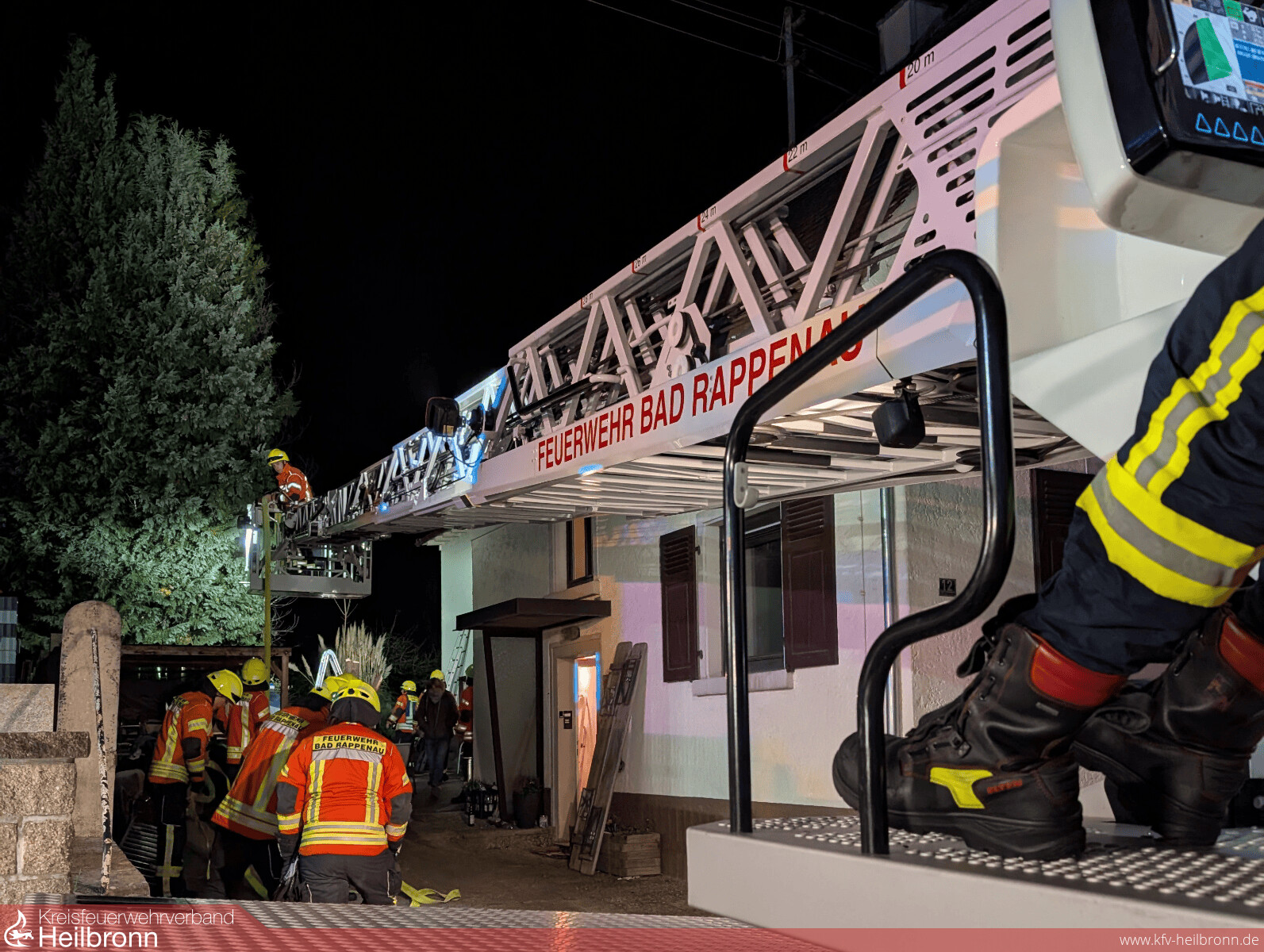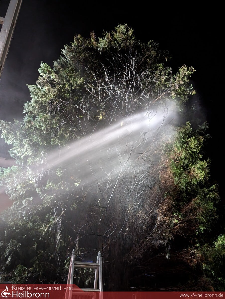 Mit dem Einsatzstichwort „Rauchentwicklung Wohngebäude“ wurde die Feuerwehr Bad Rappenau am frühen Samstagabend in die Bergstraße alarmiert. Bei Eintreffen der Einsatzkräfte hatten die Flammen bereits auf eine Tanne übergegriffen und drohten, sich auf das angrenzende Wohngebäude auszubreiten. Als Brandursache konnte eine in unmittelbarer Nähe betriebene Feuertonne identifiziert werden.