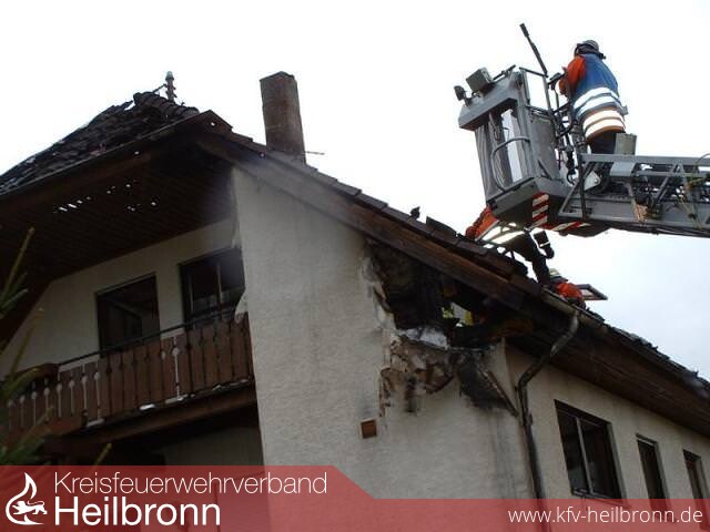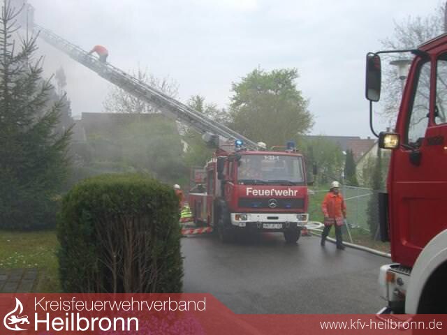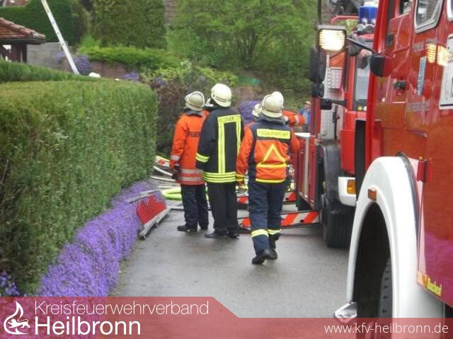 Über die Drehleiter aus Bad Friedrichshall wurde dann ein C-Rohr vorgenommen.