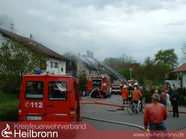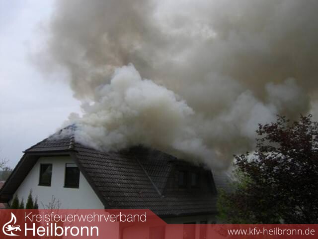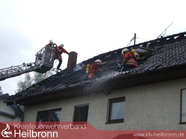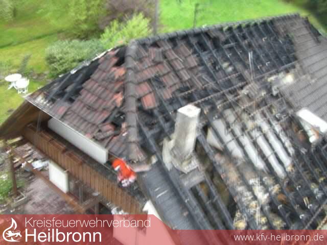 Das Feuer hatte sich mittlerweile durch die Dachisolierung ausgebreitet und das komplette Kehlgebälk in Brand gesetzt.