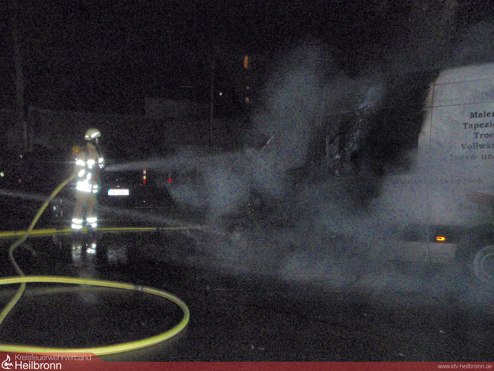 Um 23.55 Uhr wurde die Feuerwehr zu einem brennenden Mercedes Sprinter in die Goppeltstraße gerufen.