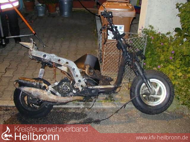 Bereits noch auf der Anfahrt zur Einsatzstelle wurde über Funk mitgeteilt, dass das Kraftrad bereits durch Anwohner abgelöscht wurde. An der Einsatzstelle selbst wurde dann eine Nachkontrolle des gelöschten Motorrollers durchgeführt.