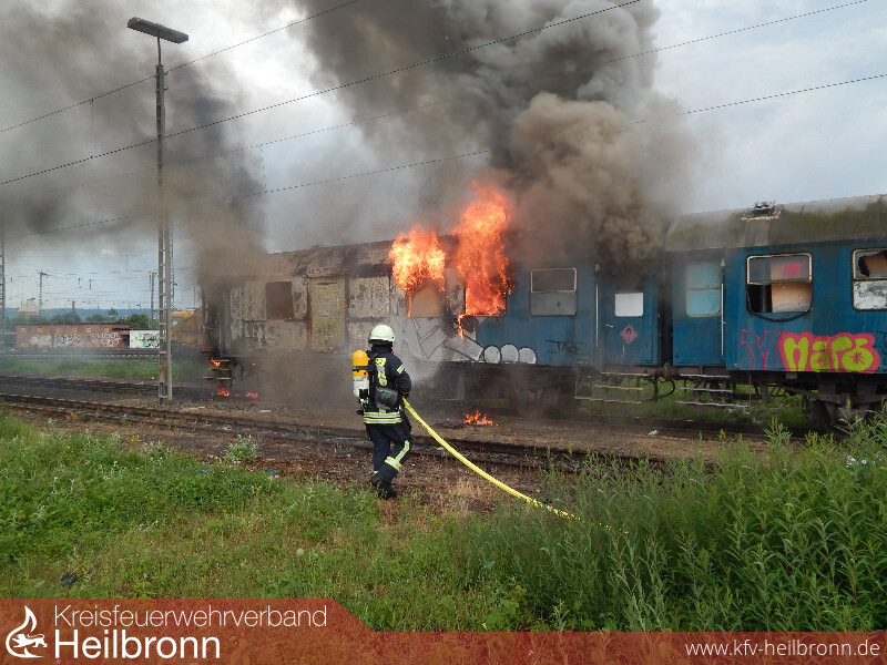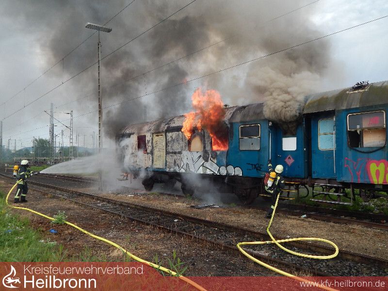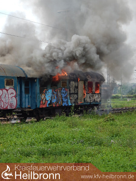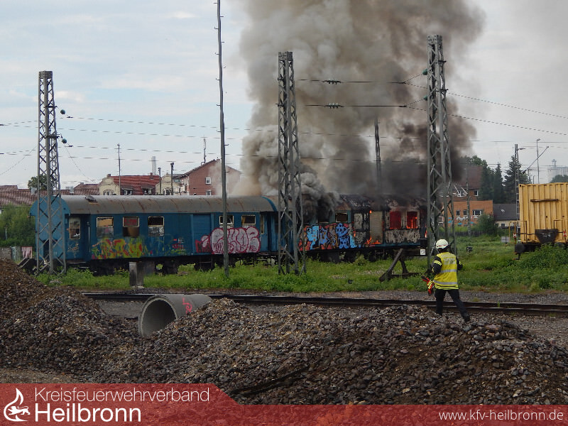 Um 17:56 Uhr wurde die Feuerwehr zu einem brennenden Personenwaggon im Güterbahnhof nach Heilbronn-Böckingen alarmiert.