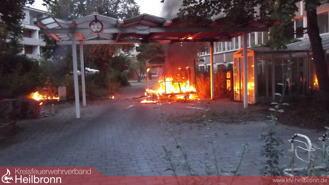 Das Feuer hatte bereits auf die Überdachung und die umliegende Bepflanzung übergegriffen.