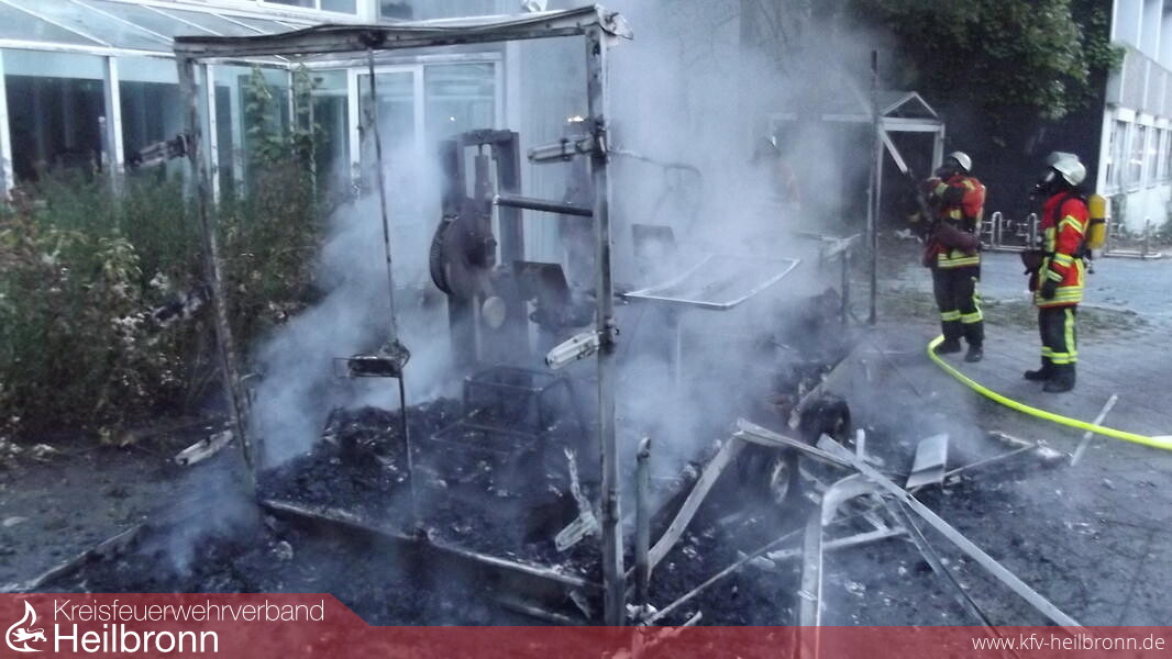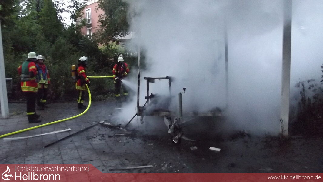 Beim Eintreffen an der Einsatzstelle, stellte sich heraus, dass ein PKW-Anhänger aus unbekannter Ursache in Brand geraten war, welcher unter einer Überdachung vor einer ehemaligen Kurklinik abgestellt war.