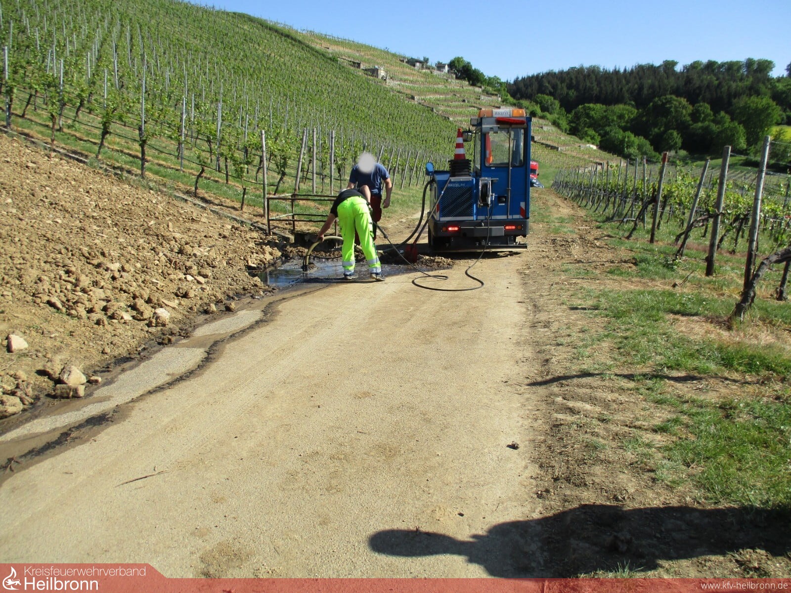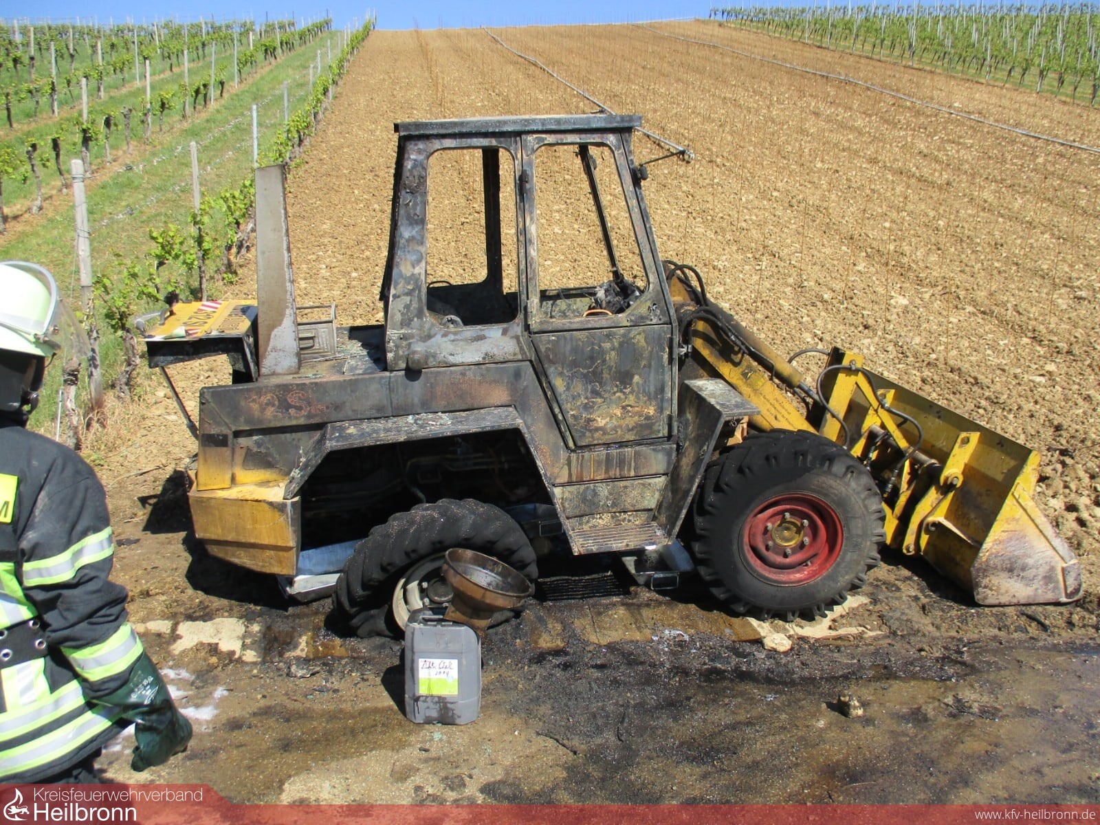 Die Feuerwehr Neckarwestheim wurde am Mittwochmittag zu einem brennenden Radlader in die Weinberge alarmiert.