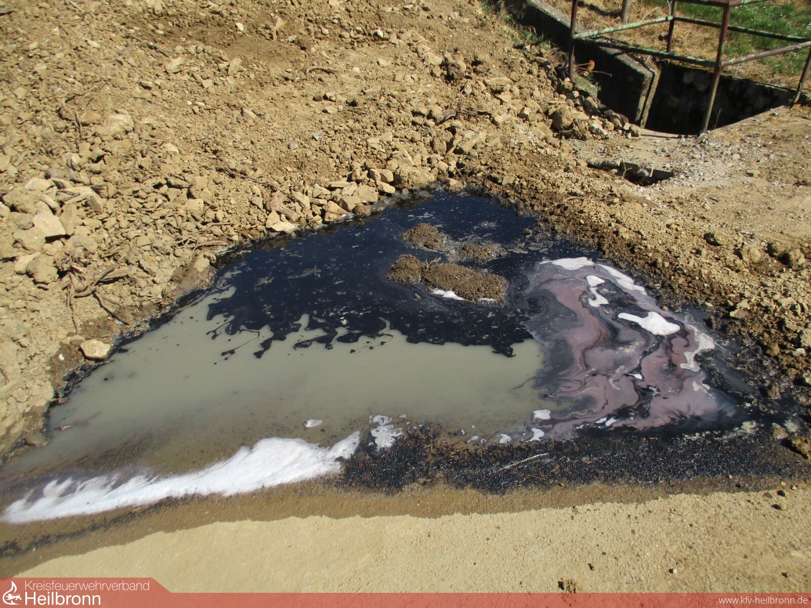 Als die Kräfte an der Einsatzstelle eintrafen, stand das Fahrzeug bereits in Vollbrand. Mit einem C-Rohr unter Zugabe von Netzmittel wurde die Brandbekämpfung unter Atemschutz vorgenommen. Parallel wurde die Wasserversorgung über 200 m zum nächstgelegenen Unterflurhydrant aufgebaut. Das Löschwasser vermischte sich mit austretendem Hydrauliköl und Diesel und wurde daher mit Schuttmulden und einem Erdwall aufgefangen. Zur Aufnahme der Emulsion und des kontaminierten Erdreichs wurde eine Spezialfirma hinzugezogen.
