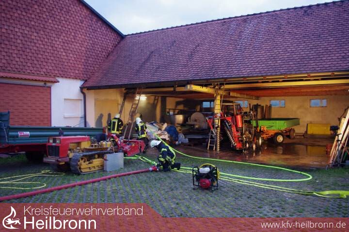 Am frühen Freitagmorgen sind die Feuerwehren Ellhofen und Lehrensteinsfeld zu einem Brand in einem landwirtschaftlichen Anwesen in Ellhofen alarmiert worden.