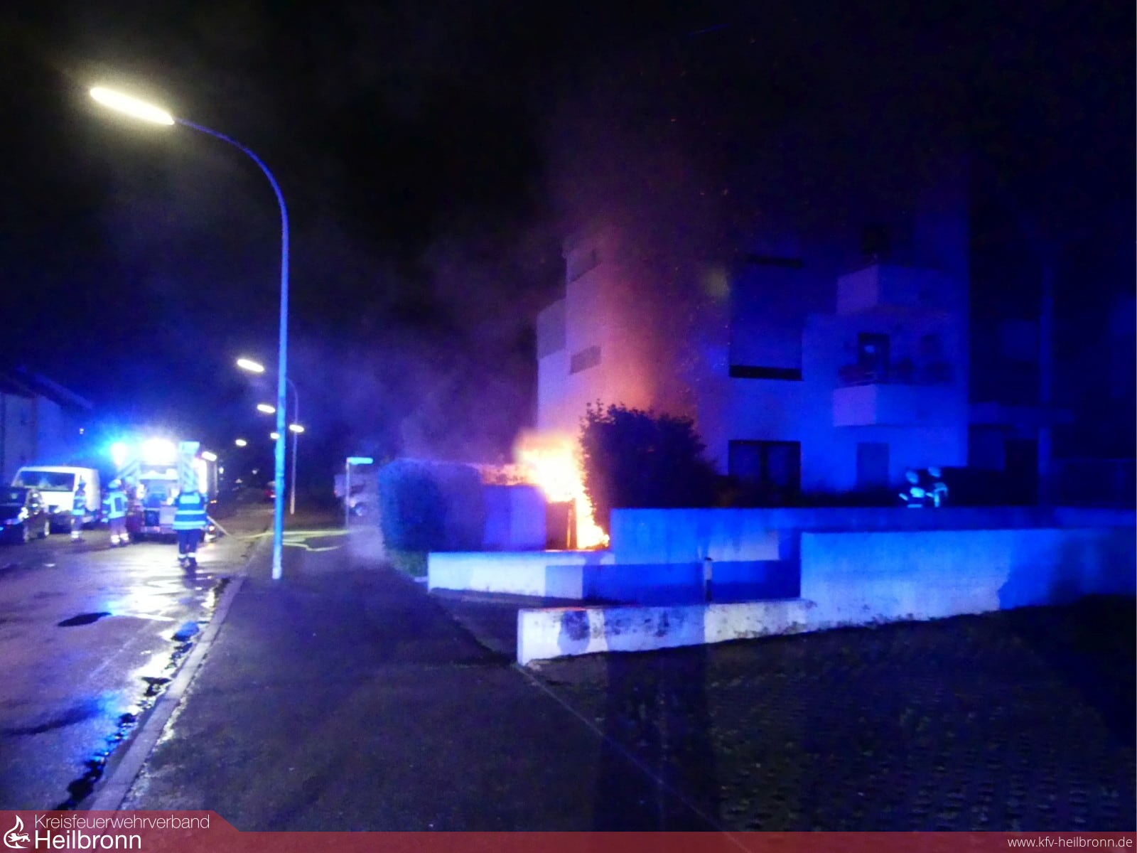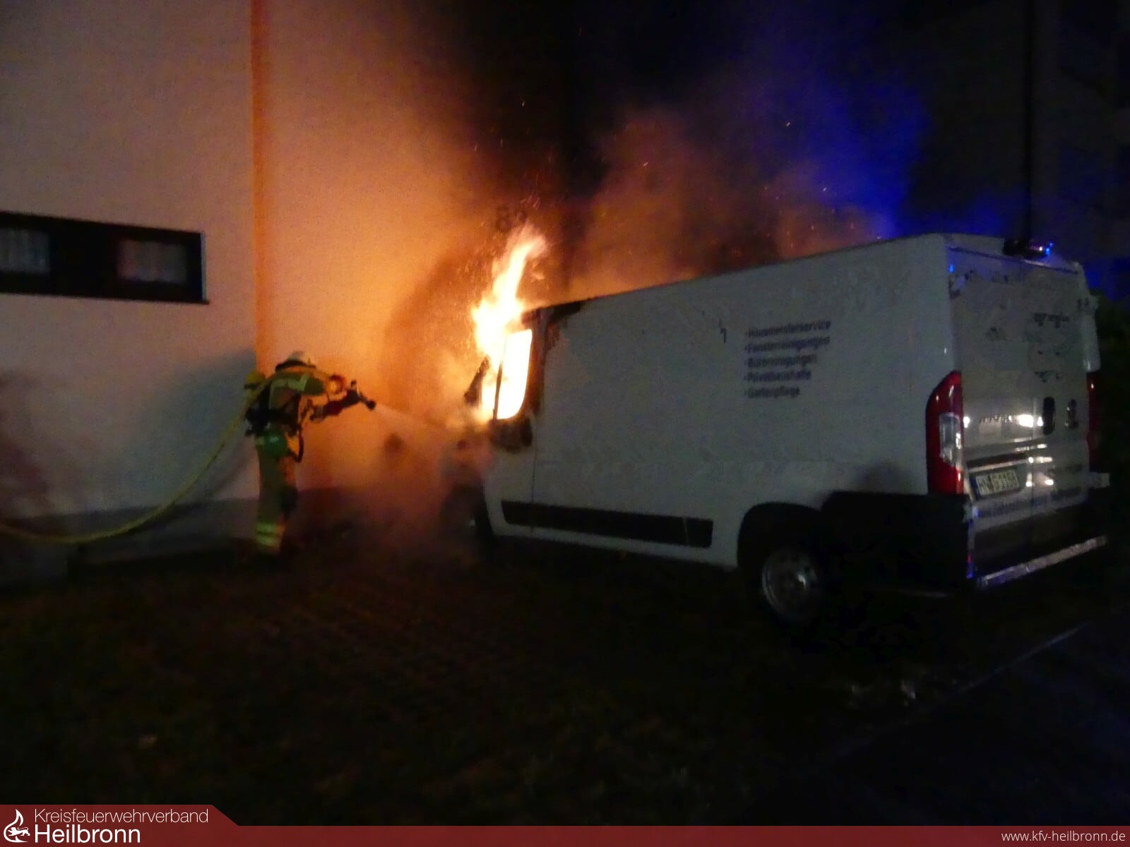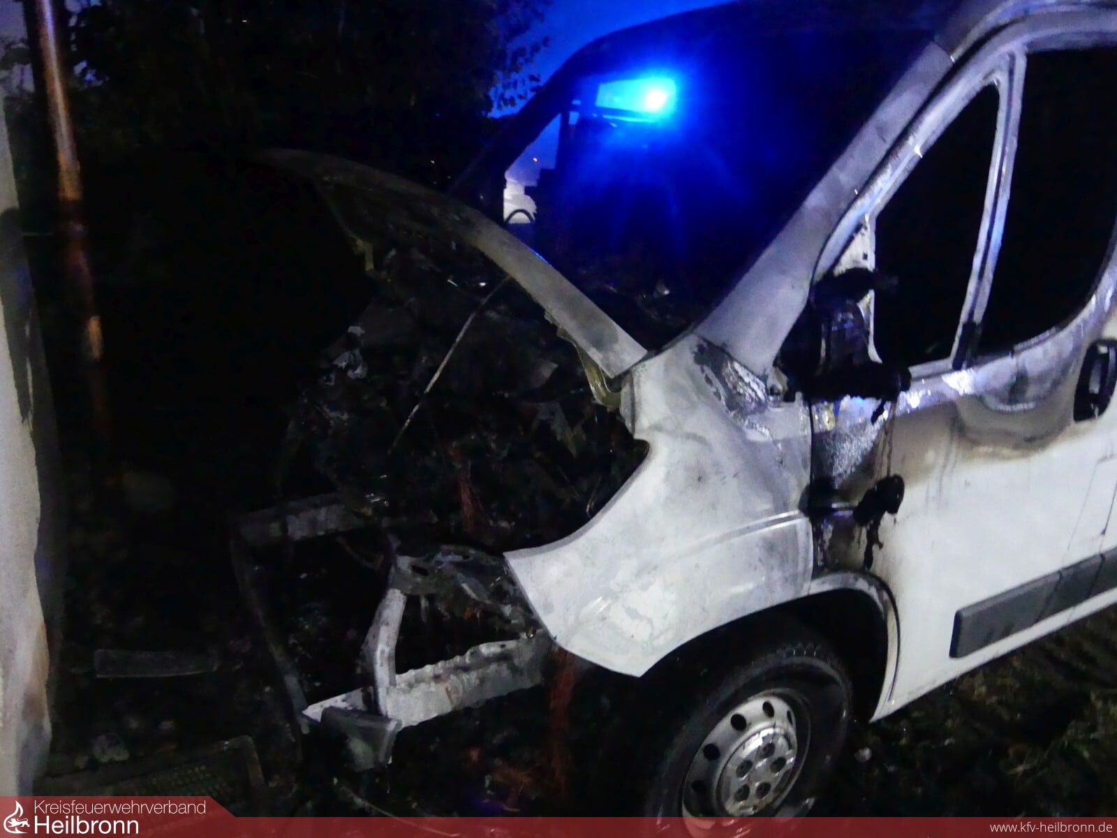 Mitten in der Nacht um 02.33 Uhr wurde der Löschzug nach Heilbronn Sontheim alarmiert. Mehrere Anwohner meldeten ein brennendes Fahrzeug an der Hauswand eines Mehrfamilienhauses in der Güldensteinstraße. Vor Ort brannte ein Fiat Kastenwagen im vorderen Bereich in voller Ausdehnung. Der kurzen Entdeckungszeit sowie dem schnellen Eingreifen der Feuerwehr ist es zu verdanken, dass die Flammen nicht ins Innere des Gebäudes gelangen konnten.