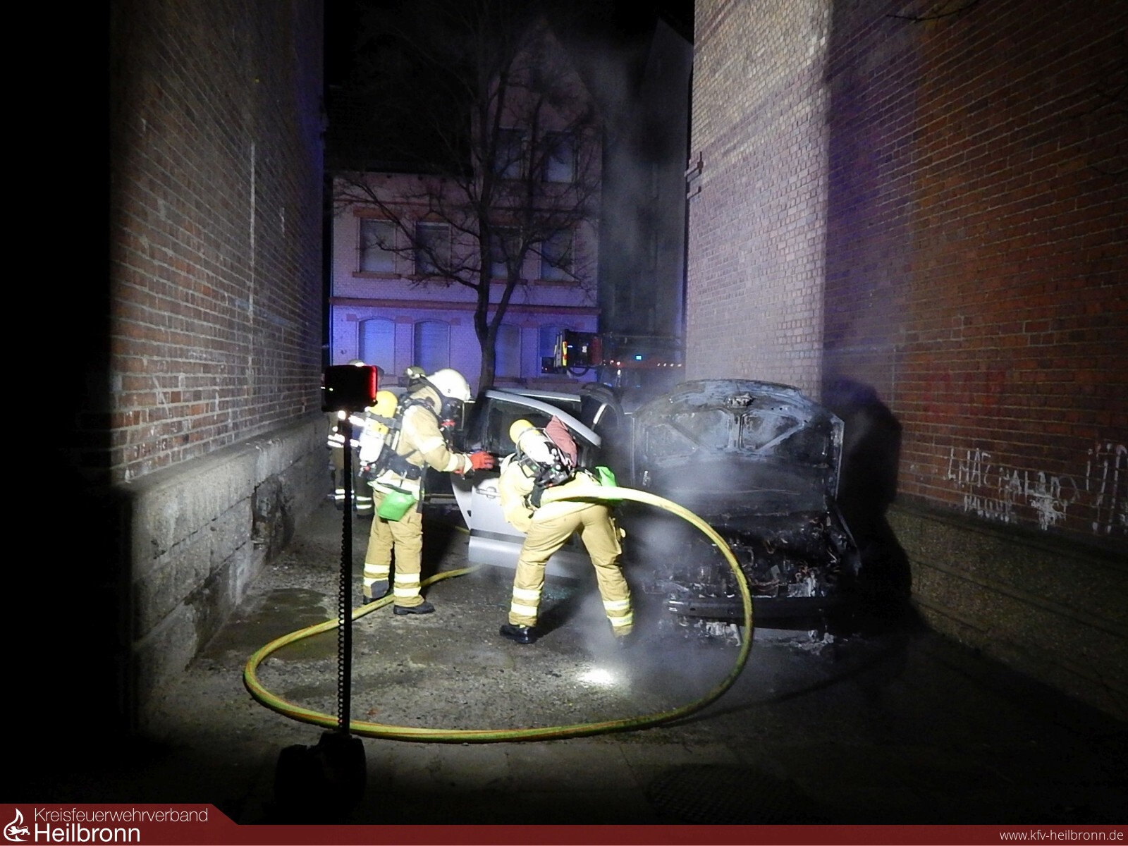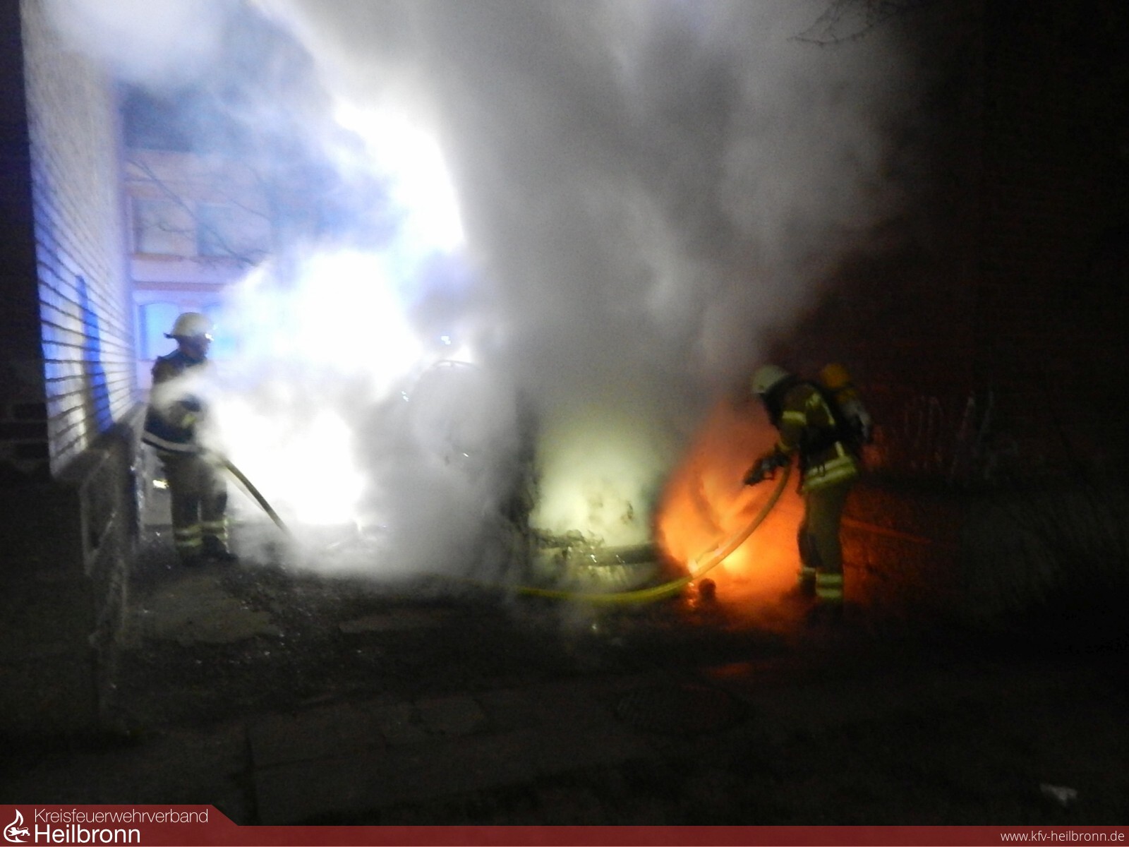 Zu einem Fahrzeugbrand rückte die Feuerwehr um 02.48 Uhr nach Heilbronn Böckingen aus.