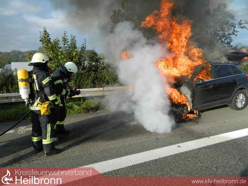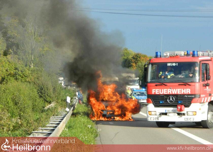 Zu einem Fahrzeugbrand in voller Ausdehnung kam es um 16.53 Uhr auf der Autobahn 6 in Fahrtrichtung Mannheim.