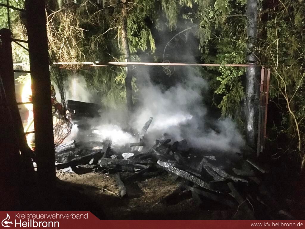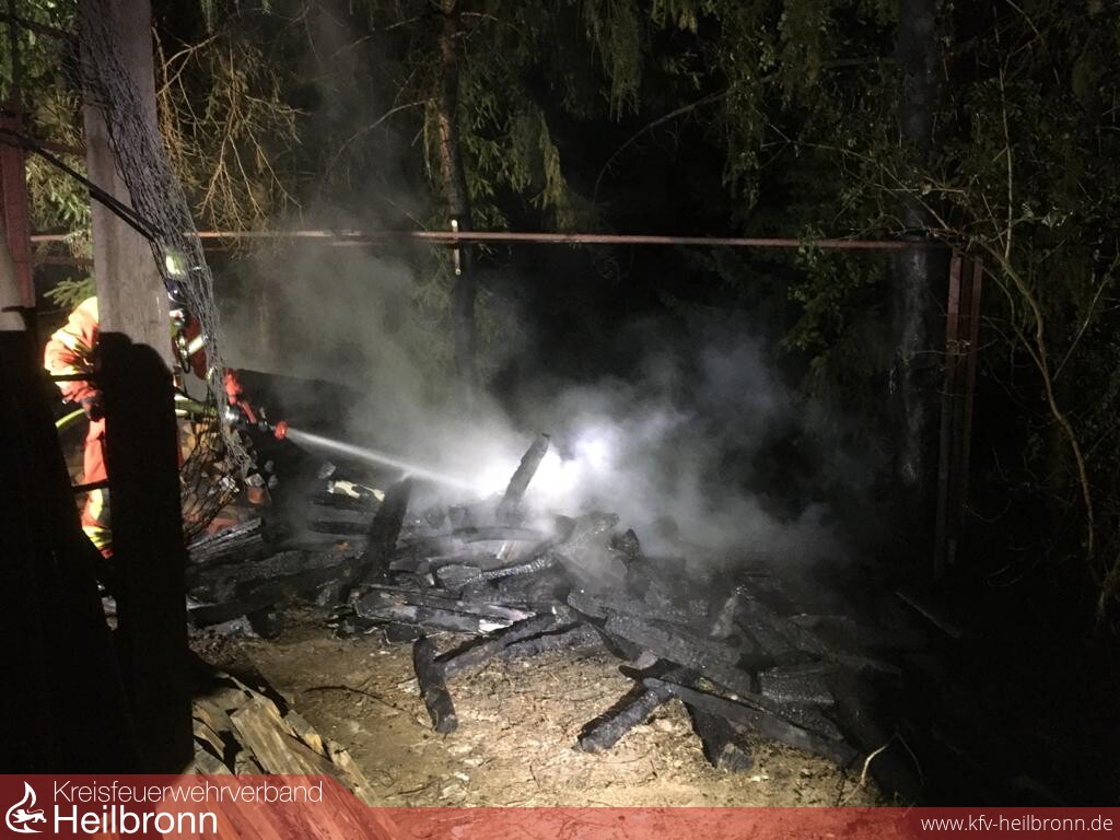 Der telefonischen Meldung zufolge brannte im Neubürgerweg ein Gartenhaus. Bei Eintreffen der alarmierten Feuerwehrabteilungen aus Herbolzheim und Neudenau, schlugen die Flammen meterhoch hinter dem Einfamilienhaus empor. Mit zwei C-Rohren gelang es innerhalb kürzester Zeit das Feuer wirksam zu bekämpfen und zu löschen. Das Brennholz wurde umgeschichtet und abgelöscht. Zur Ermittlung der Brandursache war ein Streifenwagen der Polizei da.