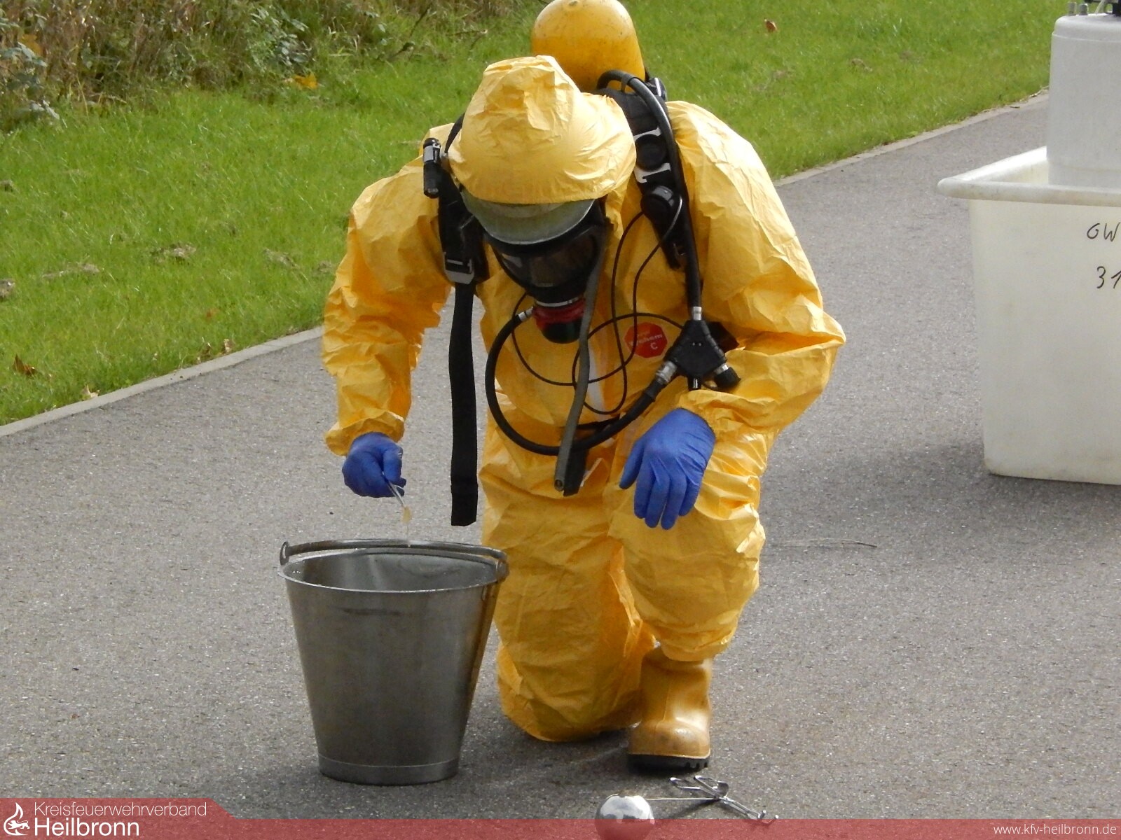 Im Beisein des Fachberaters Chemie der Feuerwehr Heilbronn wurde die Enthärtungsanlage entleert.