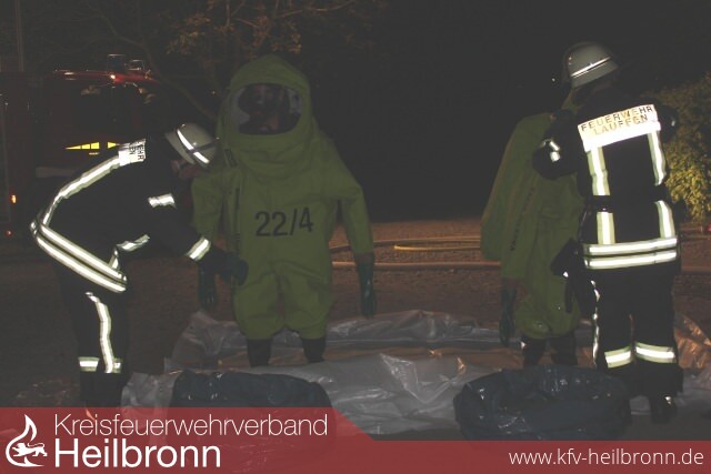 Gegen 22 Uhr wurde die Feuerwehr Lauffen mit Vollalarm und der Gruppe Umweltschutz und Meßtechnik mit dem Einsatzstichwort \"Gefahrguteinsatz Freibad Lauffen\" alarmiert, weil die dortige Anlage einen Chlorgasaustritt angezeigt hatte.